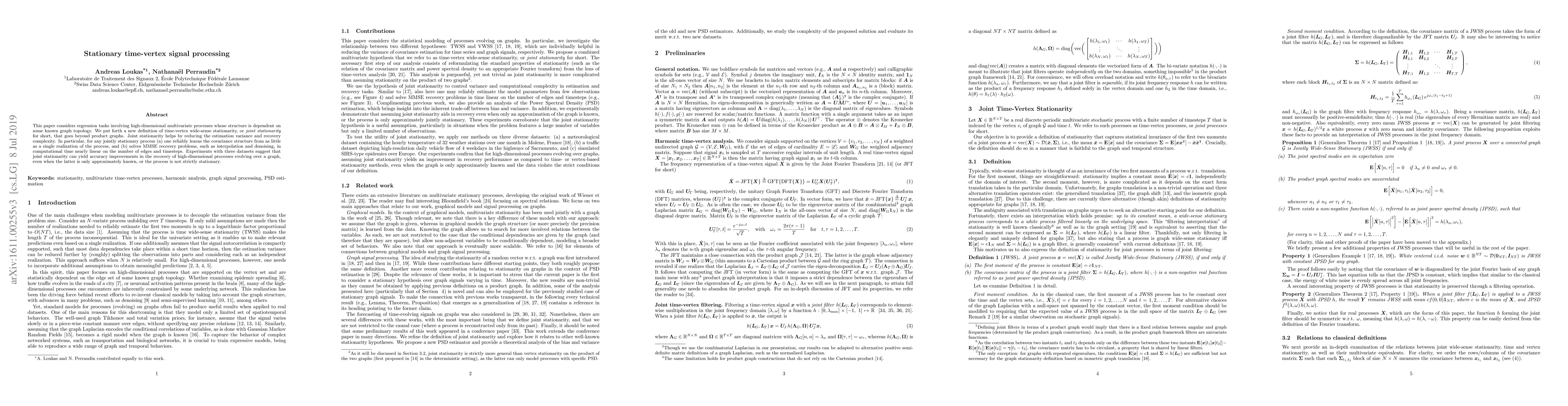 This paper considers regression tasks involving high-dimensional multivariate processes whose structure is dependent on some {known} graph topology. We put forth a new definition of time-vertex wide-sense stationarity, or joint stationarity for short, that goes beyond product graphs. Joint stationarity helps by reducing the estimation variance and recovery complexity. In particular, for any jointly stationary process (a) one reliably learns the covariance structure from as little as a single realization of the process, and (b) solves MMSE recovery problems, such as interpolation and denoising, in computational time nearly linear on the number of edges and timesteps. Experiments with three datasets suggest that joint stationarity can yield accuracy improvements in the recovery of high-dimensional processes evolving over a graph, even when the latter is only approximately known, or the process is not strictly stationary.