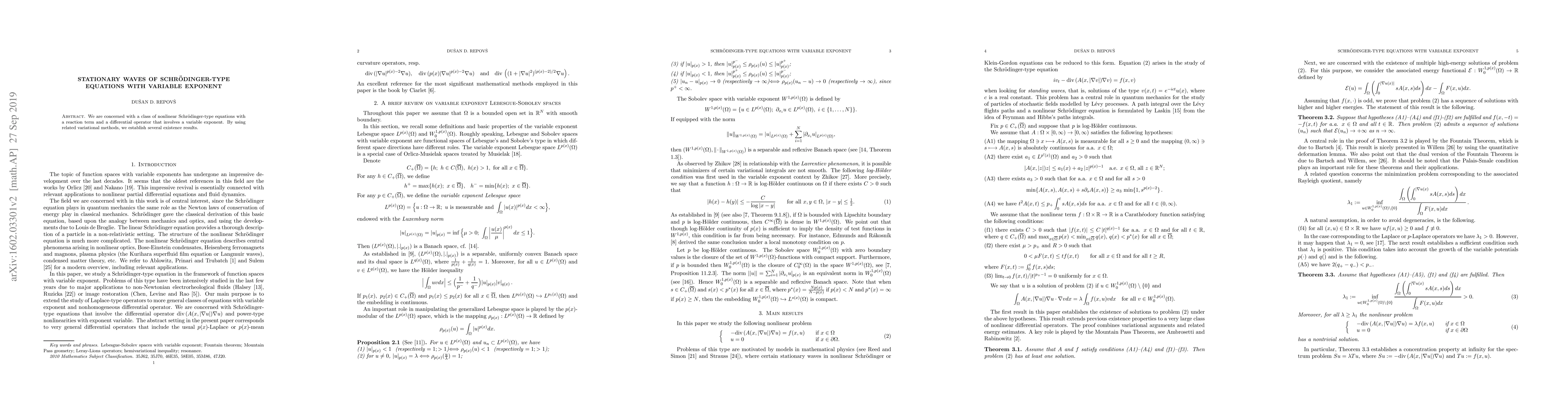 We are concerned with a class of nonlinear Schr\"{o}dinger-type equations with a reaction term and a differential operator that involves a variable exponent. By using related variational methods, we establish several existence results.