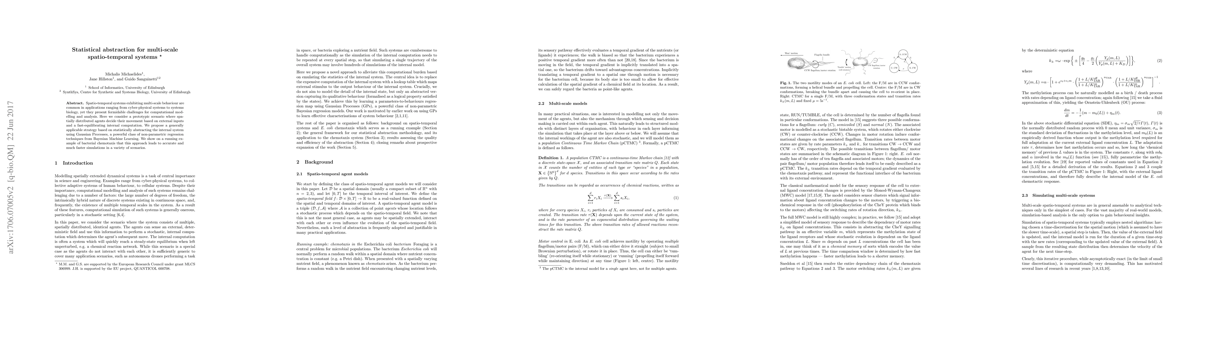 This paper proposes a statistically abstracting method using Gaussian Processes for modeling multi-scale spatio-temporal systems, demonstrating its effectiveness through faster and accurate simulations in bacterial chemotaxis. The approach is shown to be generally applicable to various complex systems.