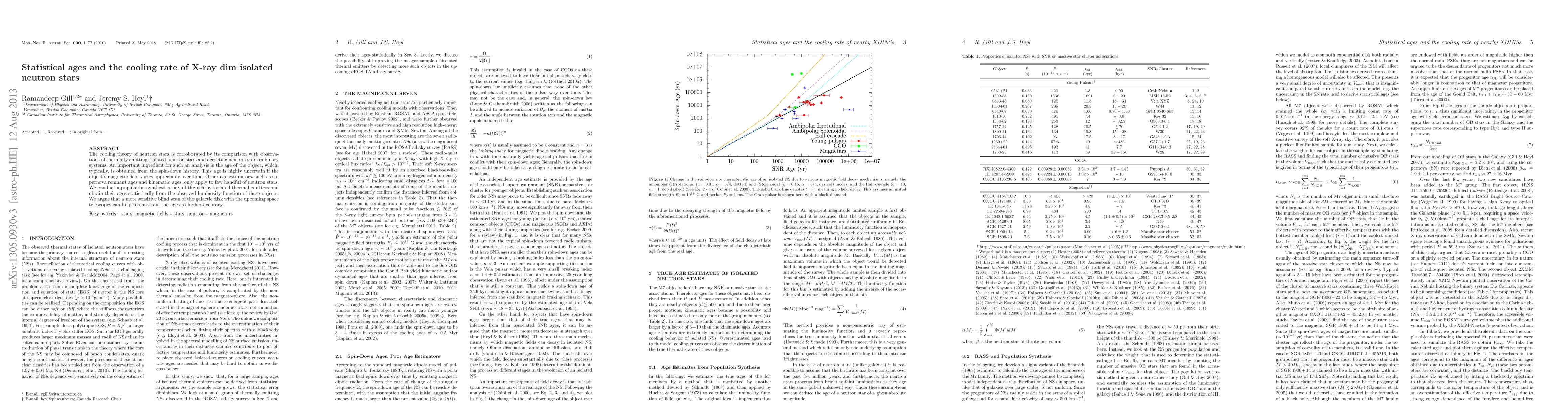 This paper investigates the cooling rates of X-ray dim isolated neutron stars using statistical ages derived from the observed luminosity function, rather than spin-down history. It suggests that improved telescopic scans could further refine these age estimates.