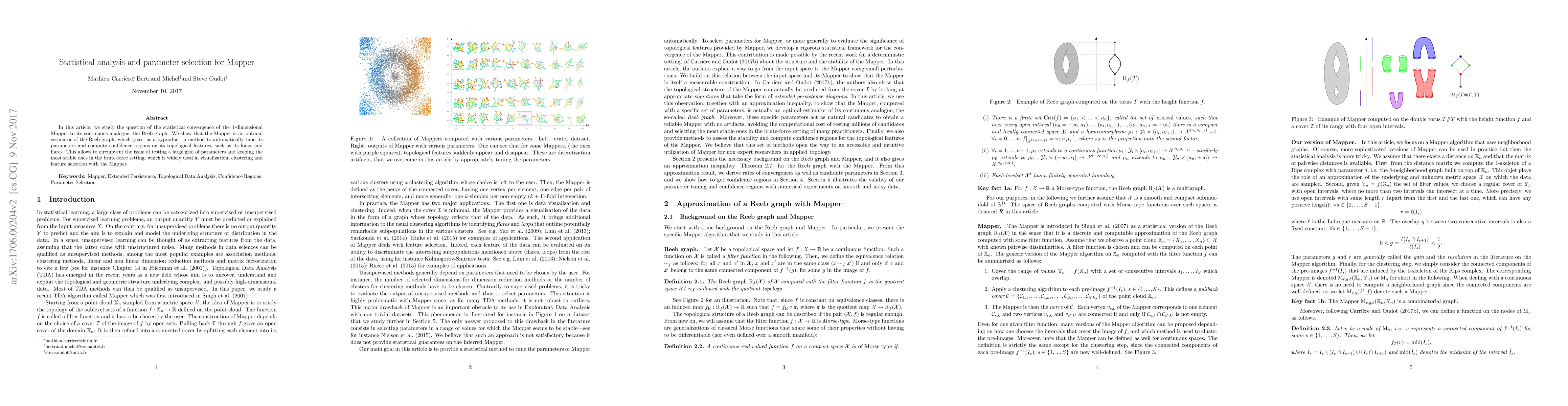 In this article, we study the question of the statistical convergence of the 1-dimensional Mapper to its continuous analogue, the Reeb graph. We show that the Mapper is an optimal estimator of the Reeb graph, which gives, as a byproduct, a method to automatically tune its parameters and compute confidence regions on its topological features, such as its loops and flares. This allows to circumvent the issue of testing a large grid of parameters and keeping the most stable ones in the brute-force setting, which is widely used in visualization, clustering and feature selection with the Mapper.