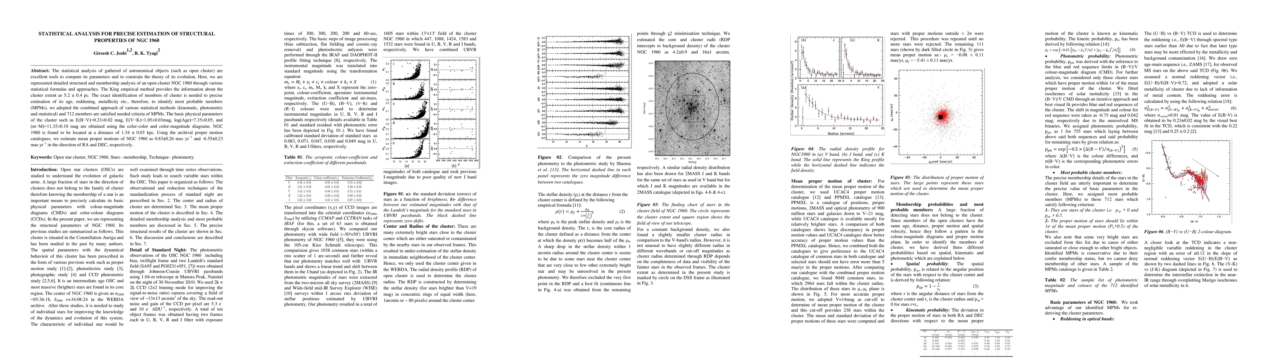 The statistical analysis of gathered of astronomical objects (such as open cluster) are excellent tools to compute its parameters and to constrain the theory of its evolution. Here, we are represented detailed structural and membership analysis of an open cluster NGC 1960 through various statistical formulas and approaches. King empirical methods provide the information about the cluster extent as 5.2 +/- 0.4 pc. The exact identification of members of cluster is needed to precise estimation of its age, reddening, metallicity etc., therefore, to identify most probable members (MPMs), we adopted the combined approach of various statistical methods (kinematic, photometric and statistical) and 712 members are satisfied needed criteria of MPMs. The basic physical parameters of the cluster such as E(B-V)=0.23+/-0.02 mag, E(V-K)=1.05+/-0.03mag, log(Age)=7.35+/-0.05, and (m-M)=11.35+/-0.10 mag are obtained using the color-color and color-magnitude diagrams. NGC 1960 is found to be located at a distance of 1.34 +/- 0.03 kpc. Using the archival proper motion catalogues, we estimate mean proper motions of NGC 1960 as 0.83+/-0.26 mas yr-1 and -6.55+/-0.23 mas yr-1 in the direction of RA and DEC, respectively.