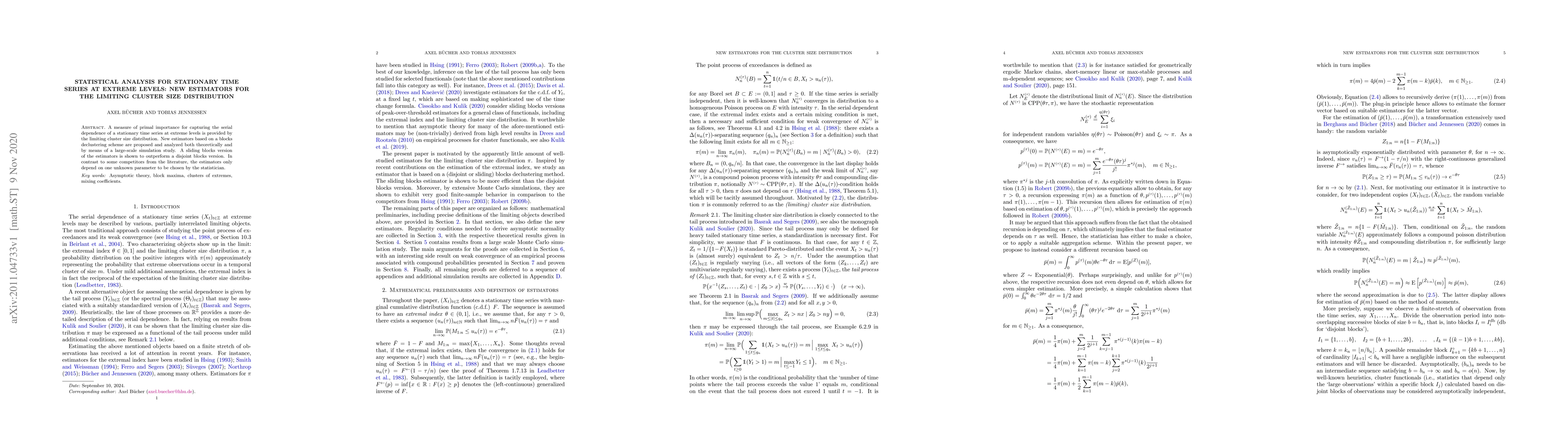 This paper proposes new estimators for the limiting cluster size distribution in stationary time series at extreme levels, utilizing a blocks declustering scheme. The sliding blocks version of the estimators is shown to outperform the disjoint blocks version through theoretical analysis and large-scale simulations.