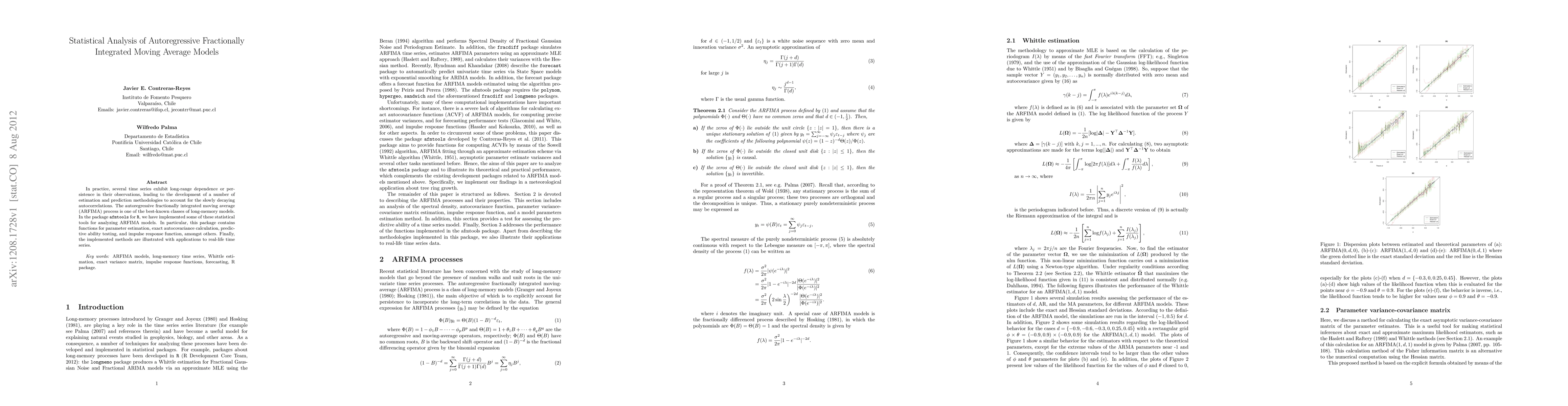The research focuses on statistical analysis of Autoregressive Fractionally Integrated Moving Average (ARFIMA) models, implementing various estimation and prediction methodologies for long-range dependent time series using the R package afmtools.