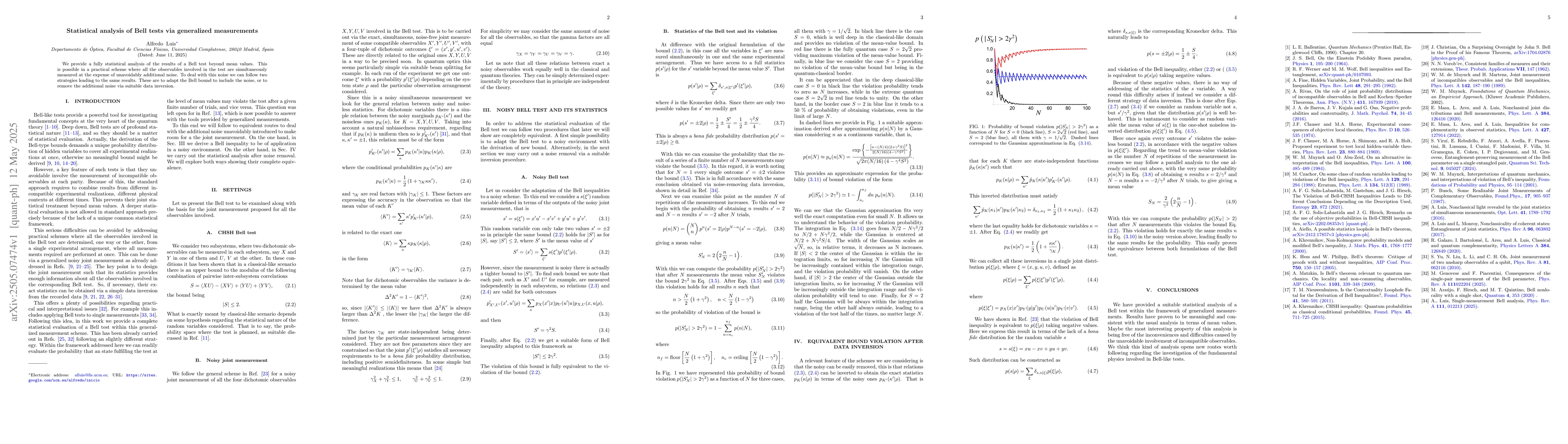 The research provides a statistical analysis of Bell test results, extending beyond mean values. It proposes a practical scheme for simultaneous measurement of all observables involved in the test, acknowledging additional noise that arises.