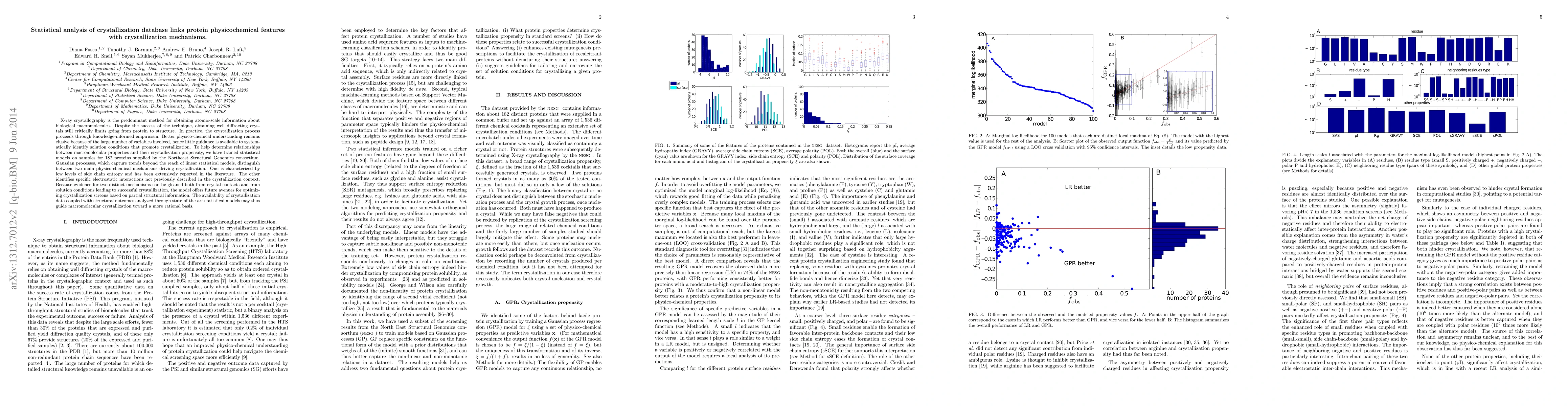 This paper uses statistical models to analyze a crystallization database, identifying two main physico-chemical mechanisms driving protein crystallization. It reveals that low side chain entropy and specific electrostatic interactions are key factors, offering new insights for optimizing crystallization conditions based on protein properties.