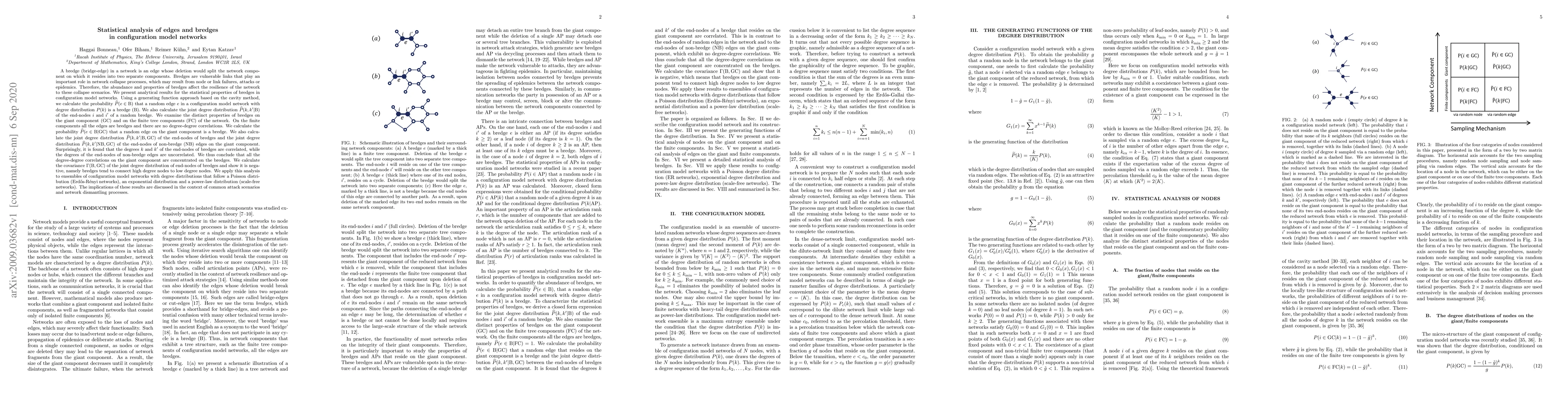 A bredge (bridge-edge) is an edge whose deletion would split the network component on which it resides into two components. Bredges are vulnerable links that play an important role in network collapse processes, which may result from node or link failures, attacks or epidemics. Therefore, the abundance and properties of bredges affect the resilience of the network. We present analytical results for the statistical properties of bredges in configuration model networks. Using a generating function approach based on the cavity method, we calculate the probability $\hat P(e\in{\rm B})$ that a random edge e in a configuration model network with degree distribution P(k) is a bredge (B). We also calculate the joint degree distribution $\hat P(k,k'|{\rm B})$ of the end-nodes of a random bredge. We examine the distinct properties of bredges on the giant component (GC) and on the finite tree components (FC) of the network. On the finite components all the edges are bredges and there are no degree-degree correlations. We calculate the probability $\hat P(e\in{\rm B}|{\rm GC})$ that a random edge on the giant component is a bredge. We also calculate the joint degree distribution $\hat P(k,k'|{\rm B},{\rm GC})$ of the end-nodes of bredges and the joint degree distribution $\hat P(k,k'|{\rm NB},{\rm GC})$ of the end-nodes of non-bredge (NB) edges on the giant component. Surprisingly, it is found that the degrees k and k' of the end-nodes of bredges are correlated, while the degrees of the end-nodes of NB edges are uncorrelated. We thus conclude that all the degree-degree correlations on the giant component are concentrated on the bredges. We calculate the covariance of end-nodes of bredges and show it is negative, namely bredges tend to connect high degree nodes to low degree nodes. The implications of the results are discussed in the context of common attack scenarios and dismantling processes.