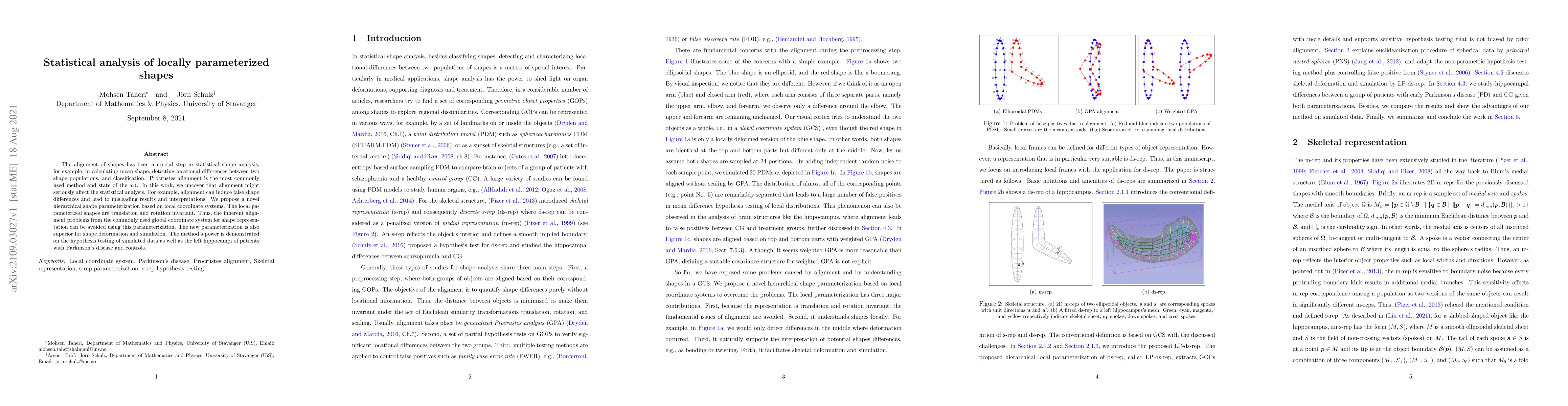 The alignment of shapes has been a crucial step in statistical shape analysis, for example, in calculating mean shape, detecting locational differences between two shape populations, and classification. Procrustes alignment is the most commonly used method and state of the art. In this work, we uncover that alignment might seriously affect the statistical analysis. For example, alignment can induce false shape differences and lead to misleading results and interpretations. We propose a novel hierarchical shape parameterization based on local coordinate systems. The local parameterized shapes are translation and rotation invariant. Thus, the inherent alignment problems from the commonly used global coordinate system for shape representation can be avoided using this parameterization. The new parameterization is also superior for shape deformation and simulation. The method's power is demonstrated on the hypothesis testing of simulated data as well as the left hippocampi of patients with Parkinson's disease and controls.