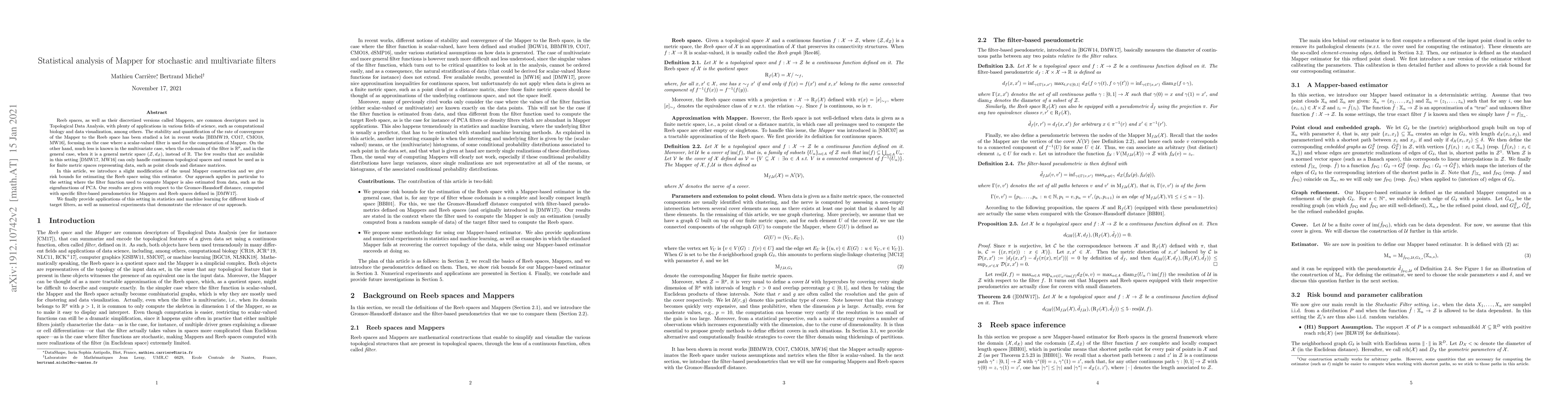 Reeb spaces, as well as their discretized versions called Mappers, are common descriptors used in Topological Data Analysis, with plenty of applications in various fields of science, such as computational biology and data visualization, among others. The stability and quantification of the rate of convergence of the Mapper to the Reeb space has been studied a lot in recent works [BBMW19, CO17, CMO18, MW16], focusing on the case where a scalar-valued filter is used for the computation of Mapper. On the other hand, much less is known in the multivariate case, when the codomain of the filter is $\mathbb{R}^p$, and in the general case, when it is a general metric space $(Z, d_Z)$, instead of $\mathbb{R}$. The few results that are available in this setting [DMW17, MW16] can only handle continuous topological spaces and cannot be used as is for finite metric spaces representing data, such as point clouds and distance matrices. In this article, we introduce a slight modification of the usual Mapper construction and we give risk bounds for estimating the Reeb space using this estimator. Our approach applies in particular to the setting where the filter function used to compute Mapper is also estimated from data, such as the eigenfunctions of PCA. Our results are given with respect to the Gromov-Hausdorff distance, computed with specific filter-based pseudometrics for Mappers and Reeb spaces defined in [DMW17]. We finally provide applications of this setting in statistics and machine learning for different kinds of target filters, as well as numerical experiments that demonstrate the relevance of our approach