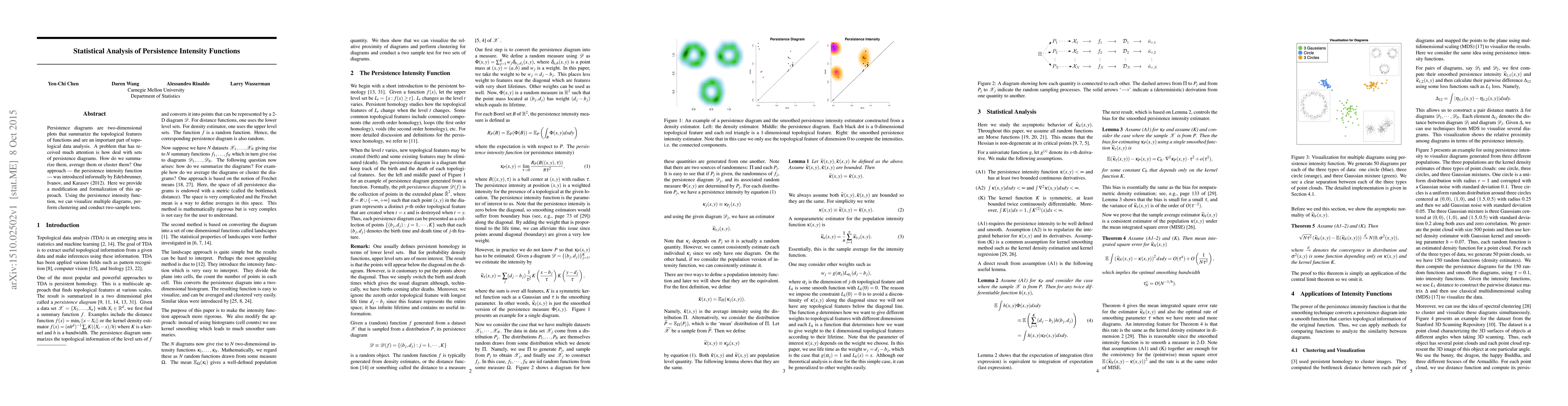 This paper modifies and formalizes the persistence intensity function to summarize and analyze sets of persistence diagrams, enabling visualization, clustering, and statistical testing. The method enhances topological data analysis by providing a robust framework for handling multiple diagrams.