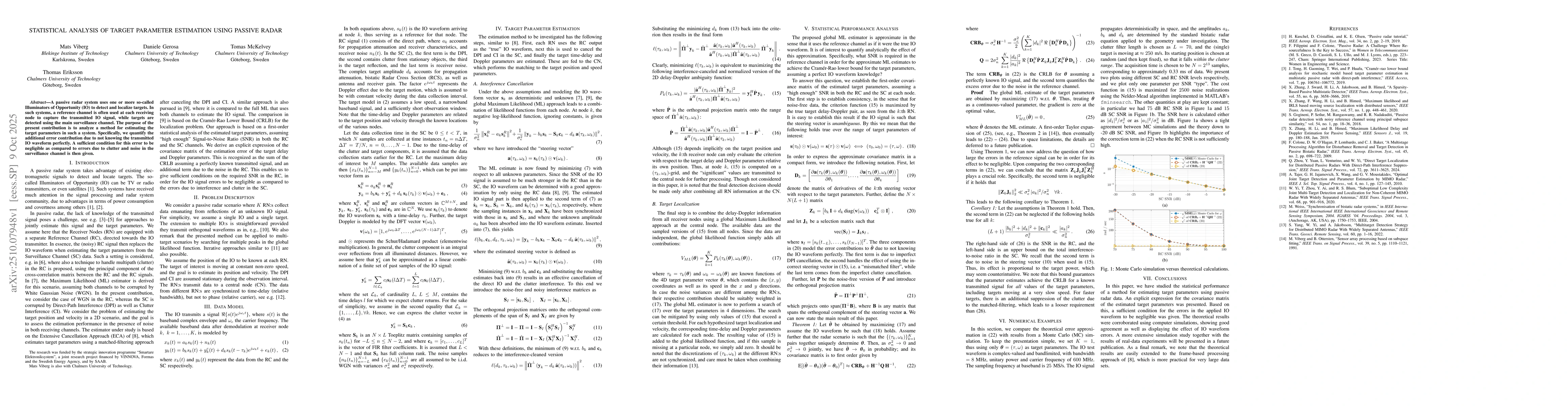 The paper introduces a global Maximum Likelihood estimator for target parameter estimation in passive radar, along with a theoretical framework to quantify the impact of reference channel noise on estimation accuracy.