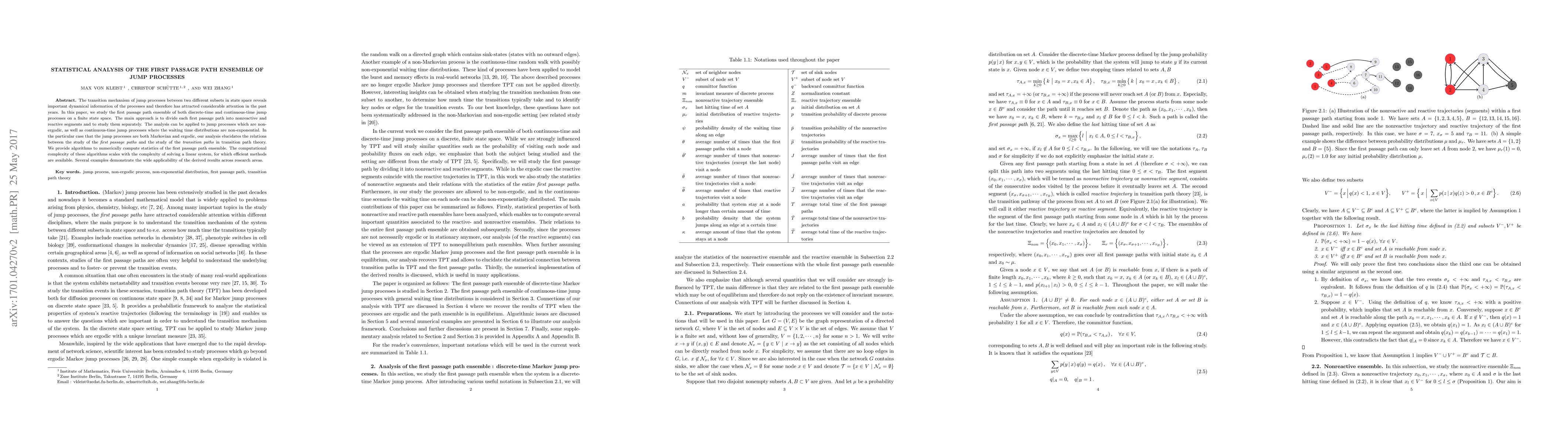 This paper investigates the first passage path ensemble of jump processes, distinguishing between nonreactive and reactive segments. It provides algorithms for computing statistics of these paths, applicable to non-ergodic and non-exponential waiting time distributions, and demonstrates their relevance in various research areas.