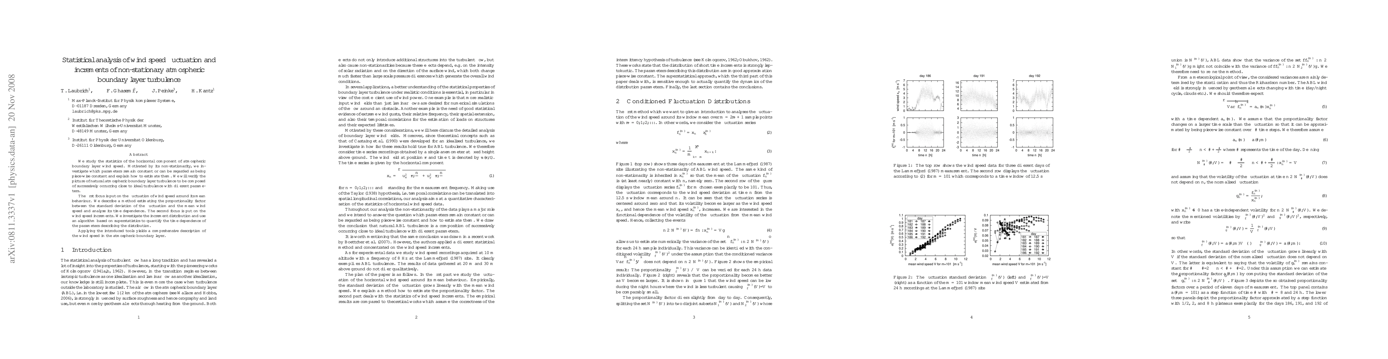 This paper investigates the statistical properties of wind speed fluctuations in the non-stationary atmospheric boundary layer, focusing on parameters that remain constant or piece-wise constant. It introduces a method to estimate the proportionality factor between wind speed fluctuations and mean wind speed, and analyzes the time dependence of these factors, alongside an algorithm based on superstatistics to quantify the time-dependent parameters of wind speed increment distribution.