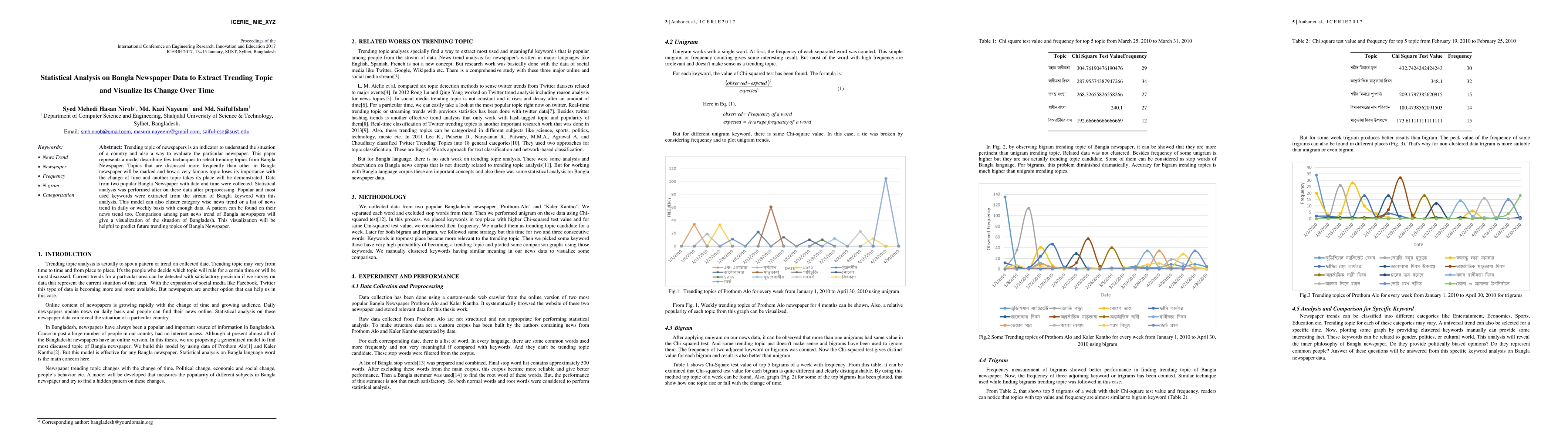 This paper develops a statistical model to identify and visualize trending topics in Bangla newspapers over time, using data from two popular newspapers. The analysis extracts frequently discussed keywords and demonstrates how topics gain and lose prominence, providing insights into the evolving news landscape of Bangladesh and aiding in future trend predictions.