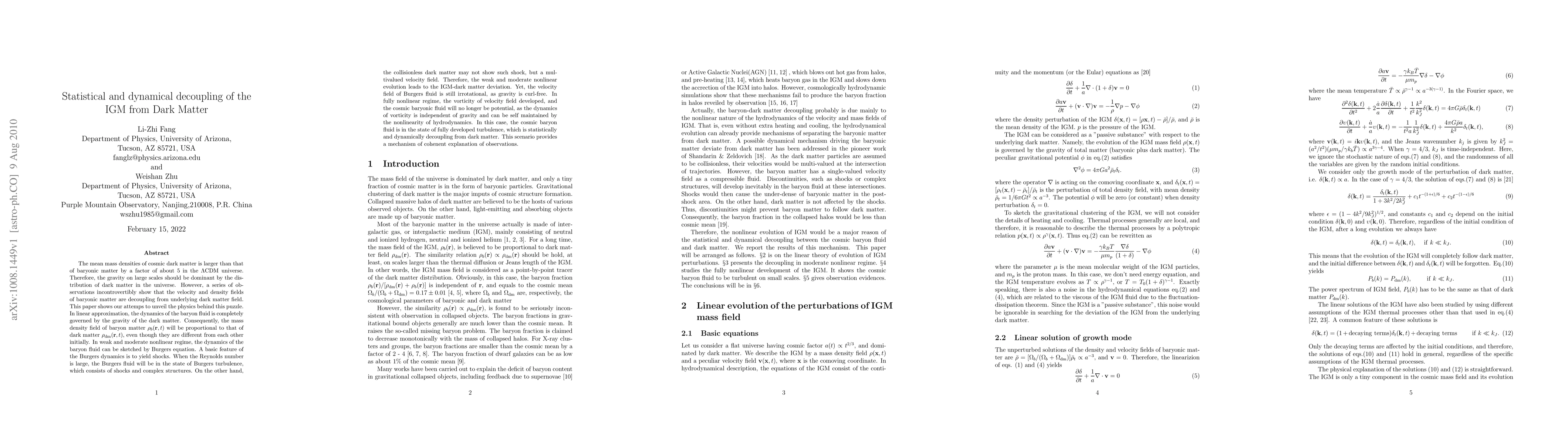 The mean mass densities of cosmic dark matter is larger than that of baryonic matter by a factor of about 5 in the $\Lambda$CDM universe. Therefore, the gravity on large scales should be dominant by the distribution of dark matter in the universe. However, a series of observations incontrovertibly show that the velocity and density fields of baryonic matter are decoupling from underlying dark matter field. This paper shows our attemps to unveil the physics behind this puzzle. In linear approximation, the dynamics of the baryon fluid is completely governed by the gravity of the dark matter. Consequently, the mass density field of baryon matter $\rho_b({\bf r},t)$ will be proportional to that of dark matter $\rho_{\rm dm}({\bf r},t)$, even though they are different from each other initially. In weak and moderate nonlinear regime, the dynamics of the baryon fluid can be sketched by Burgers equation. A basic feature of the Burgers dynamics is to yield shocks. When the Reynolds number is large, the Burgers fluid will be in the state of Burgers turbulence, which consists of shocks and complex structures. On the other hand, the collisionless dark matter may not show such shock, but a multivalued velocity field. Therefore, the weak and moderate nonlinear evolution leads to the IGM-dark matter deviation. Yet, the velocity field of Burgers fluid is still irrotational, as gravity is curl-free. In fully nonlinear regime, the vorticity of velocity field developed, and the cosmic baryonic fluid will no longer be potential, as the dynamics of vorticity is independent of gravity and can be self maintained by the nonlinearity of hydrodynamics. In this case, the cosmic baryon fluid is in the state of fully developed turbulence, which is statistically and dynamically decoupling from dark matter. This scenario provides a mechanism of cohenent explanation of observations.