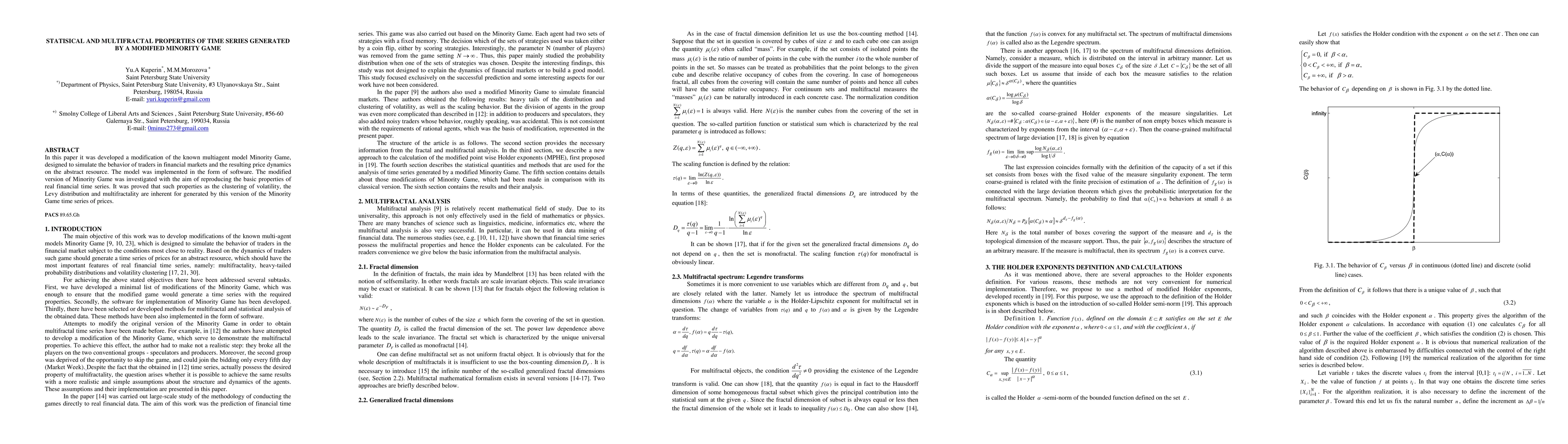 This paper modifies the Minority Game to simulate trader behavior in financial markets, showing that it reproduces statistical properties like volatility clustering, Lévy distribution, and multifractality in generated price time series.