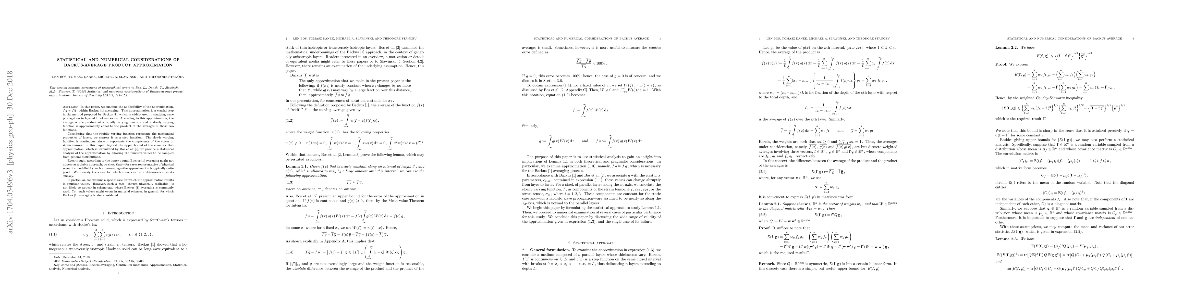 In this paper, we examine the applicability of the approximation, $\overline{f\,g}\approx \overline f\,\overline g\,$, within Backus (1962) averaging. This approximation is a crucial step in the method proposed by Backus (1962), which is widely used in studying wave propagation in layered Hookean solids. According to this approximation, the average of the product of a rapidly varying function and a slowly varying function is approximately equal to the product of the averages of those two functions. Considering that the rapidly varying function represents the mechanical properties of layers, we express it as a step function. The slowly varying function is continuous, since it represents the components of the stress or strain tensors. In this paper, beyond the upper bound of the error for that approximation, which is formulated by Bos et al. (2017), we provide a statistical analysis of the approximation by allowing the function values to be sampled from general distributions. Even though, according to the upper bound, Backus (1962) averaging might not appear as a viable approach, we show that$-$for cases representative of physical scenarios modelled by such an averaging$-$the approximation is typically quite good. We identify the cases for which there can be a deterioration in its efficacy. In particular, we examine a special case for which the approximation results in spurious values. However, such a case$-$though physically realizable$-$is not likely to appear in seismology, where Backus (1962) averaging is commonly used. Yet, such values might occur in material sciences, in general, for which Backus (1962) averaging is also considered.
