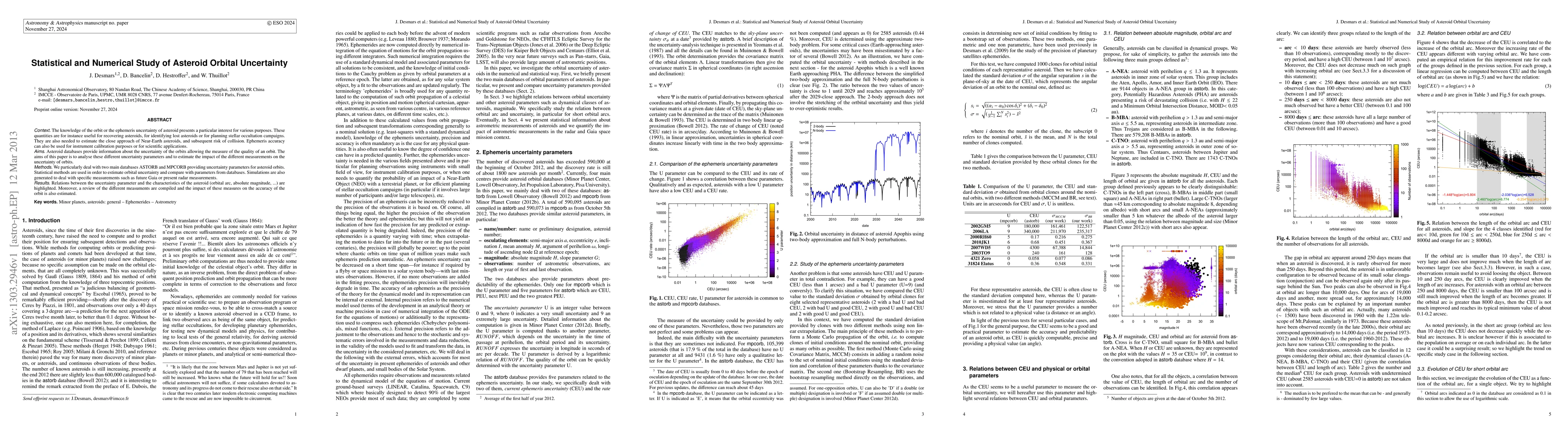 This paper analyzes asteroid orbital uncertainty using statistical methods and simulations, focusing on databases ASTORB and MPCORB. It identifies relations between uncertainty parameters and asteroid characteristics, reviews various measurements, and estimates their impact on orbit accuracy.