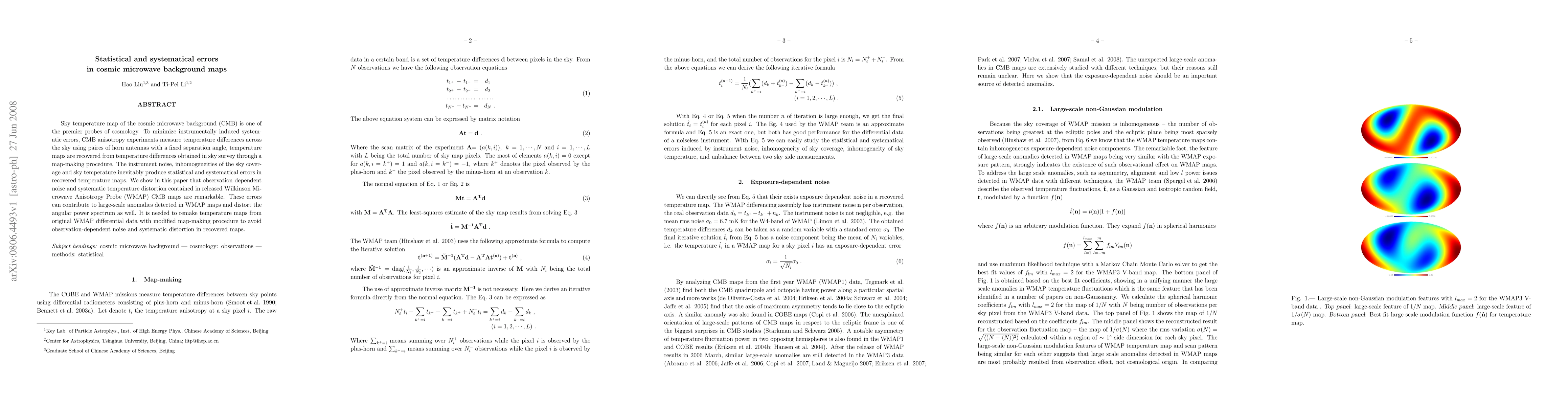 This paper investigates the statistical and systematic errors in cosmic microwave background (CMB) maps, particularly those from the WMAP experiment, revealing significant observation-dependent noise and systematic distortions. To mitigate these errors, it proposes remaking the temperature maps using a modified map-making procedure based on original WMAP data.