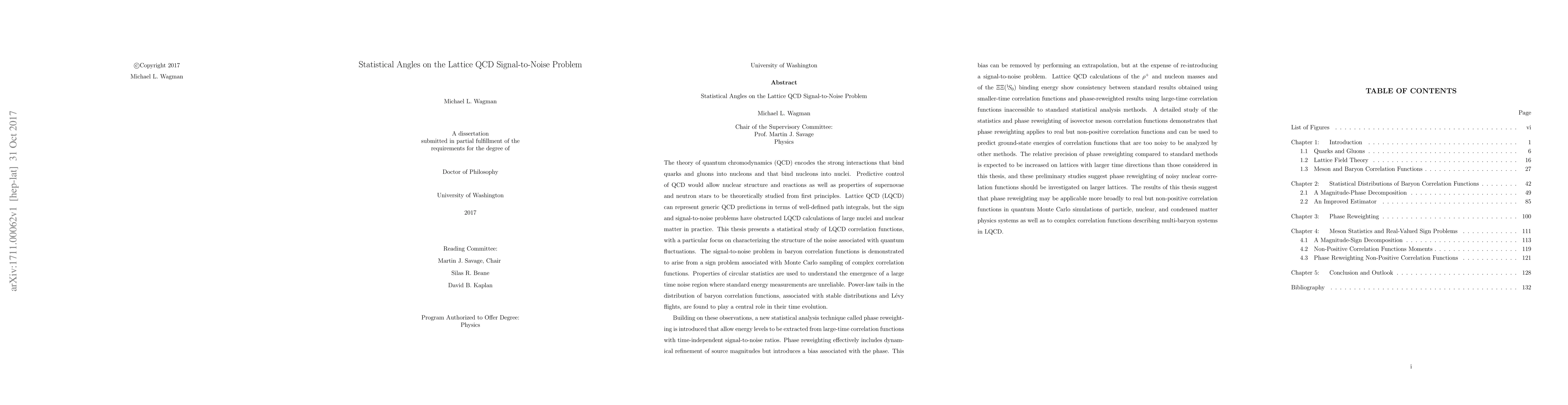 The theory of quantum chromodynamics (QCD) encodes the strong interactions that bind quarks and gluons into nucleons and that bind nucleons into nuclei. Predictive control of QCD would allow nuclear structure and reactions as well as properties of supernovae and neutron stars to be theoretically studied from first principles. Lattice QCD can represent generic QCD predictions in terms of well-defined path integrals, but the sign and signal-to-noise problems have obstructed lattice QCD calculations of large nuclei and nuclear matter in practice. This thesis presents a statistical study of lattice QCD correlation functions, with a particular focus on characterizing the structure of the noise associated with quantum fluctuations. The signal-to-noise problem in baryon correlation functions is demonstrated to arise from a sign problem associated with Monte Carlo sampling of complex correlation functions. The phases of complex correlation functions are analyzed in the framework of circular statistics, and the time evolution of the phase is shown to resemble a heavy-tailed random walk on the unit circle. Building on these observations, a new technique called phase reweighting is investigated that involves calculations of phase differences over fixed-length time intervals. Phase reweighting allows results for hadronic observables to be extracted from large-time correlation functions with constant signal-to-noise ratios. The signal-to-noise problem re-emerges as the length of the phase-difference interval is increased. Applications of phase reweighting to meson, baryon, and two-baryon systems are discussed.