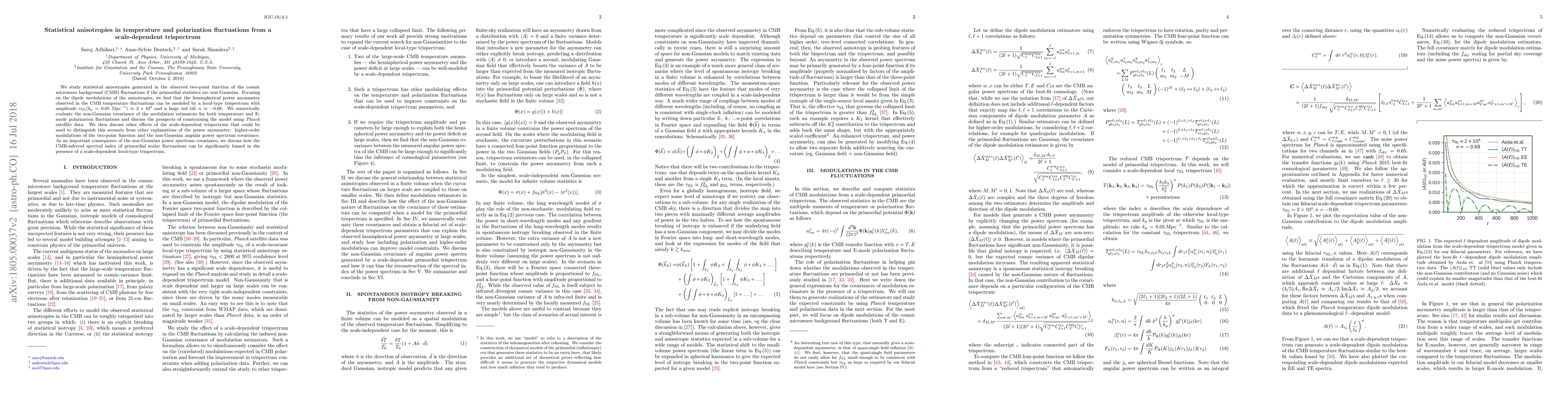 We study statistical anisotropies generated in the observed two-point function of the cosmic microwave background (CMB) fluctuations if the primordial statistics are non-Gaussian. Focusing on the dipole modulations of the anisotropies, we find that the hemispherical power asymmetry observed in the CMB temperature fluctuations can be modeled by a local-type trispectrum with amplitude $\tau_{\rm NL}(k_p=0.05~{\rm Mpc}^{-1}) \approx 2 \times 10^4$ and a large red tilt $n\approx -0.68$. We numerically evaluate the non-Gaussian covariance of the modulation estimators for both temperature and E-mode polarization fluctuations and discuss the prospects of constraining the model using Planck satellite data. We then discuss other effects of the scale-dependent trispectrum that could be used to distinguish this scenario from other explanations of the power asymmetry: higher-order modulations of the two-point function and the non-Gaussian angular power spectrum covariance. As an important consequence of the non-Gaussian power spectrum covariance, we discuss how the CMB-inferred spectral index of primordial scalar fluctuations can be significantly biased in the presence of a scale-dependent local-type trispectrum.