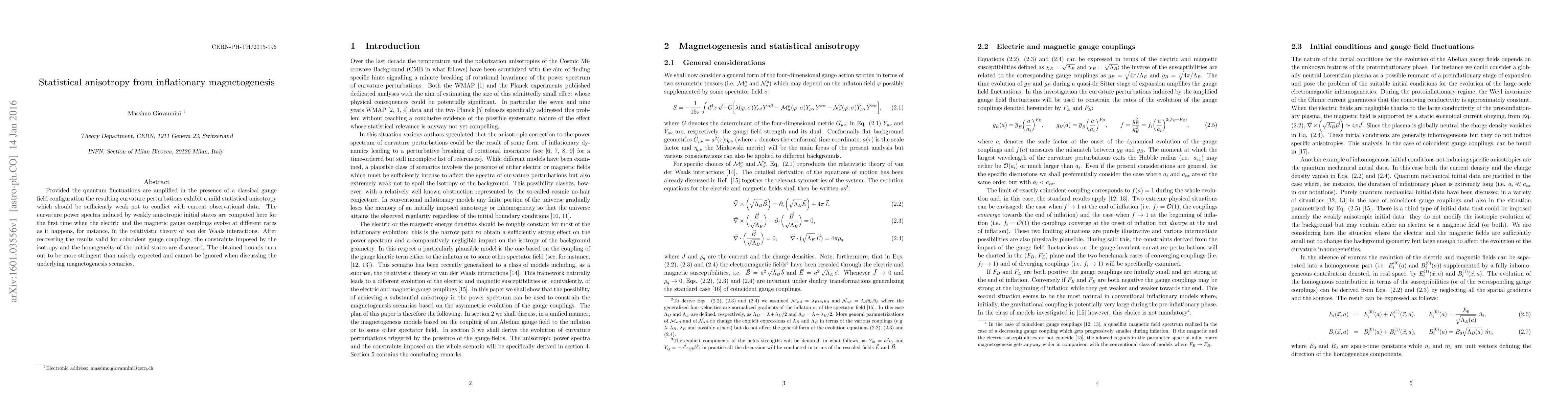 Provided the quantum fluctuations are amplified in the presence of a classical gauge field configuration the resulting curvature perturbations exhibit a mild statistical anisotropy which should be sufficiently weak not to conflict with current observational data. The curvature power spectra induced by weakly anisotropic initial states are computed here for the first time when the electric and the magnetic gauge couplings evolve at different rates as it happens, for instance, in the relativistic theory of van der Waals interactions. After recovering the results valid for coincident gauge couplings, the constraints imposed by the isotropy and the homogeneity of the initial states are discussed. The obtained bounds turn out to be more stringent than naively expected and cannot be ignored when discussing the underlying magnetogenesis scenarios.