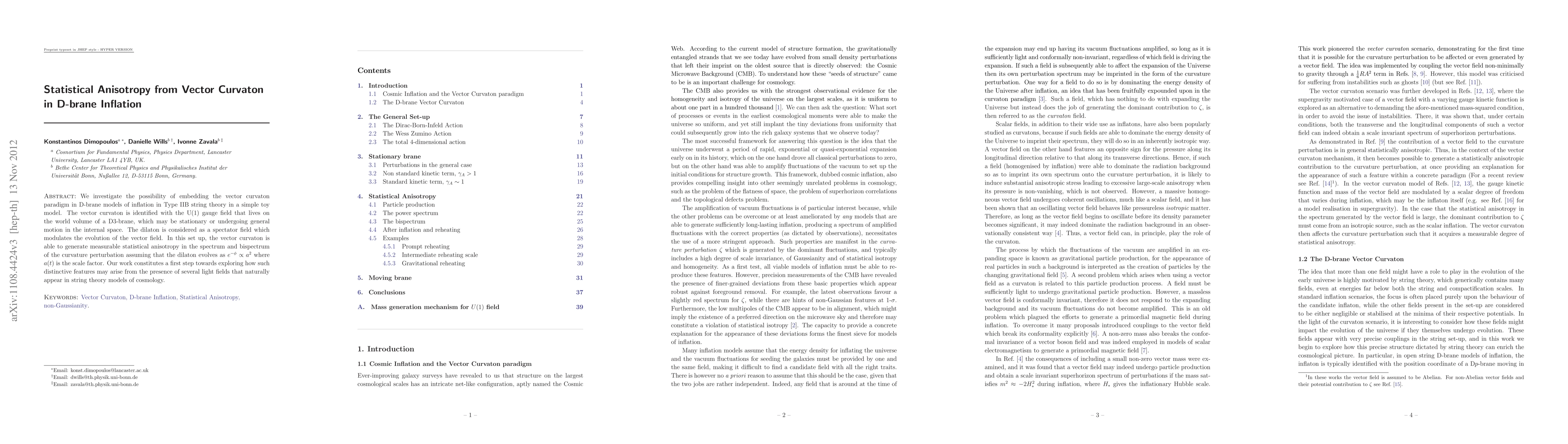 This paper explores the vector curvaton in D-brane inflation models within Type IIB string theory, where a U(1) gauge field on a D3-brane generates statistical anisotropy in curvature perturbation spectra. The dilaton modulates this evolution, offering a first look at distinctive cosmological features from string theory fields.
