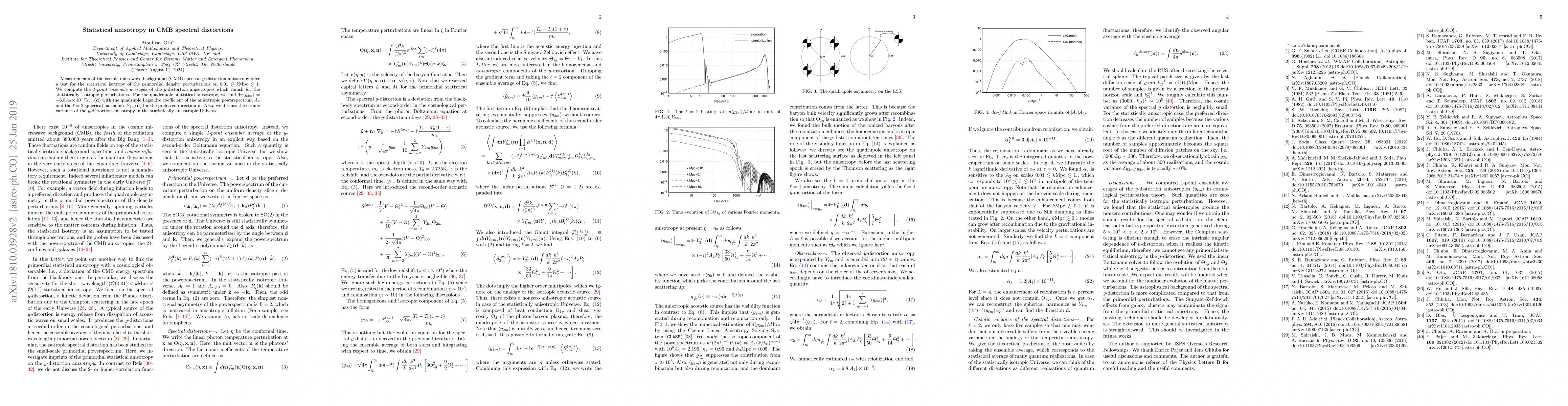 This paper investigates the statistical anisotropy in CMB spectral $y$-distortions, finding that the quadrupole anisotropy is $-6.8A_2 \times 10^{-9}Y_{2m}(\mathbf d)$, where $A_2$ is the quadruple Legendre coefficient and $\mathbf d$ indicates the preferred direction. It also examines the cosmic variance of these anisotropies in a statistically anisotropic universe.
