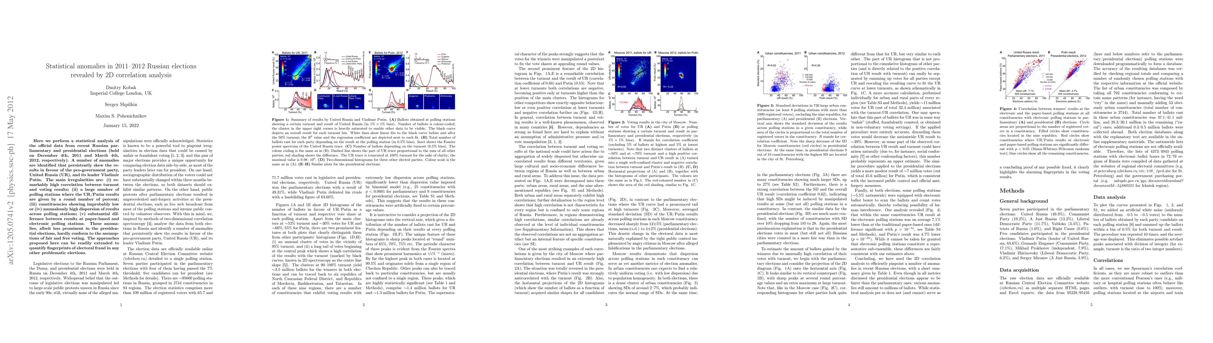 Here we perform a statistical analysis of the official data from recent Russian parliamentary and presidential elections (held on December 4th, 2011 and March 4th, 2012, respectively). A number of anomalies are identified that persistently skew the results in favour of the pro-government party, United Russia (UR), and its leader Vladimir Putin. The main irregularities are: (i) remarkably high correlation between turnout and voting results; (ii) a large number of polling stations where the UR/Putin results are given by a round number of percent; (iii) constituencies showing improbably low or (iv) anomalously high dispersion of results across polling stations; (v) substantial difference between results at paper-based and electronic polling stations. These anomalies, albeit less prominent in the presidential elections, hardly conform to the assumptions of fair and free voting. The approaches proposed here can be readily extended to quantify fingerprints of electoral fraud in any other problematic elections.