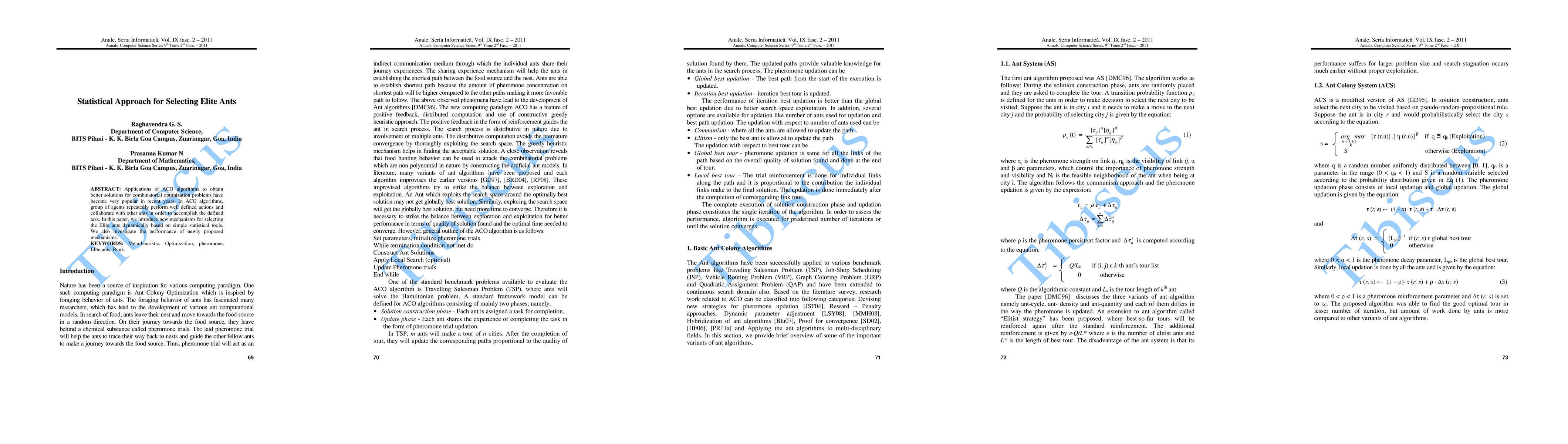 Applications of ACO algorithms to obtain better solutions for combinatorial optimization problems have become very popular in recent years. In ACO algorithms, group of agents repeatedly perform well defined actions and collaborate with other ants in order to accomplish the defined task. In this paper, we introduce new mechanisms for selecting the Elite ants dynamically based on simple statistical tools. We also investigate the performance of newly proposed mechanisms.