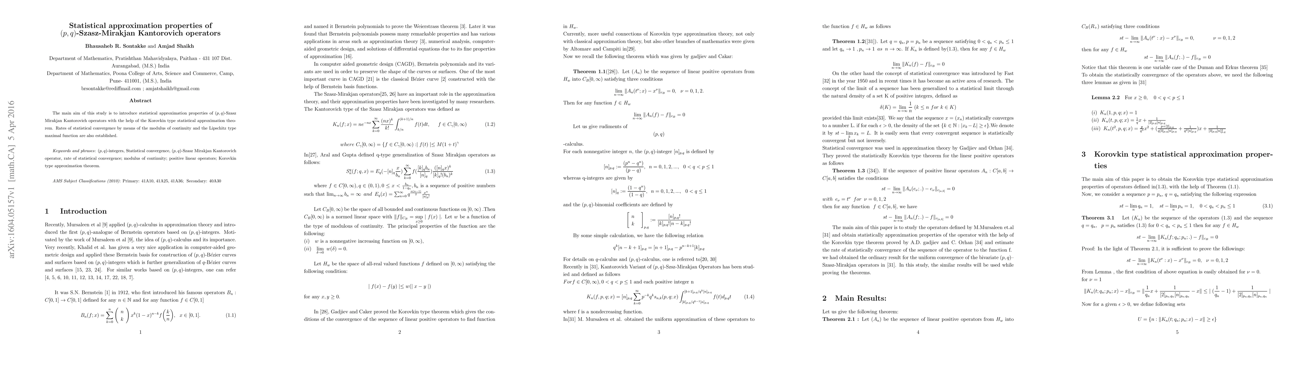 This paper introduces statistical approximation properties of (p, q)-Szasz-Mirakjan Kantorovich operators using a Korovkin type theorem. It establishes rates of statistical convergence through the modulus of continuity and Lipschitz type maximal function.