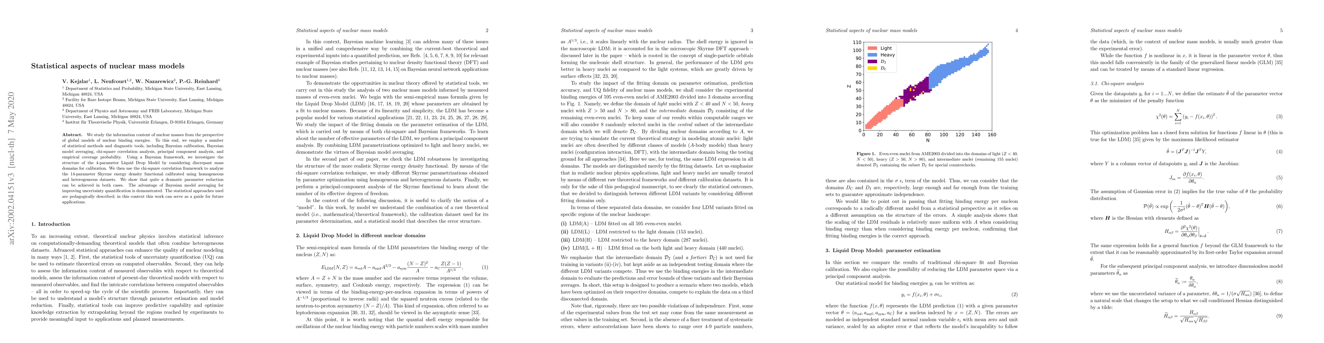 This paper employs statistical methods to assess nuclear mass models, focusing on the Bayesian framework and model averaging to improve parameter calibration and uncertainty quantification in the Liquid Drop Model and Skyrme energy density functional. The study demonstrates significant parameter reduction and highlights the pedagogical value of the statistical approaches used.