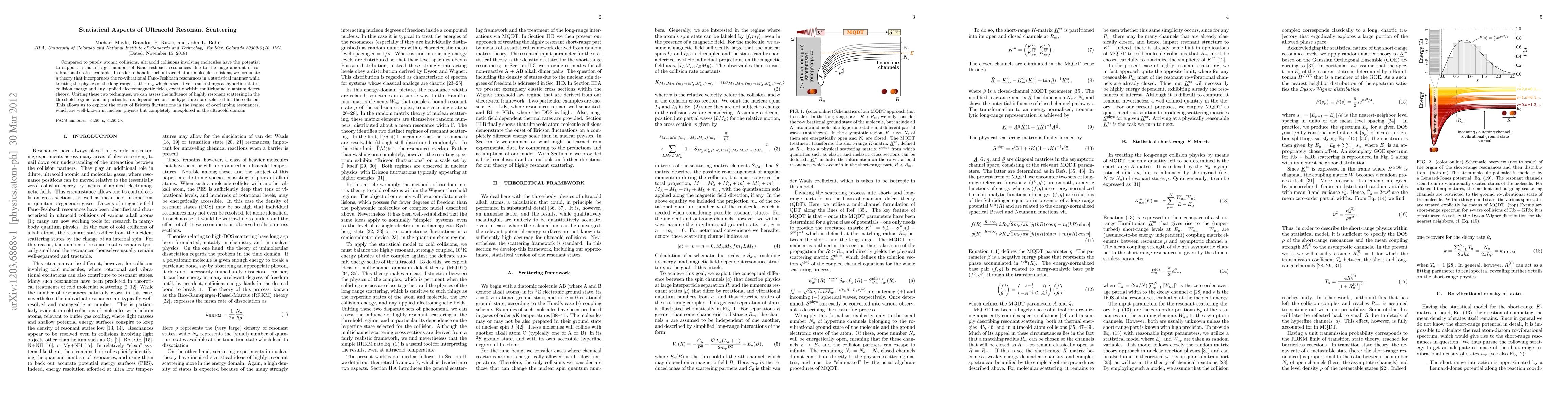 Compared to purely atomic collisions, ultracold collisions involving molecules have the potential to support a much larger number of Fano-Feshbach resonances due to the huge amount of ro-vibrational states available. In order to handle such ultracold atom-molecule collisions, we formulate a theory that incorporates the ro-vibrational Fano-Feshbach resonances in a statistical manner while treating the physics of the long-range scattering, which is sensitive to such things as hyperfine states, collision energy and any applied electromagnetic fields, exactly within multichannel quantum defect theory. Uniting these two techniques, we can assess the influence of highly resonant scattering in the threshold regime, and in particular its dependence on the hyperfine state selected for the collision. This allows us to explore the onset of Ericson fluctuations in the regime of overlapping resonances, which are well-known in nuclear physics but completely unexplored in the ultracold domain.