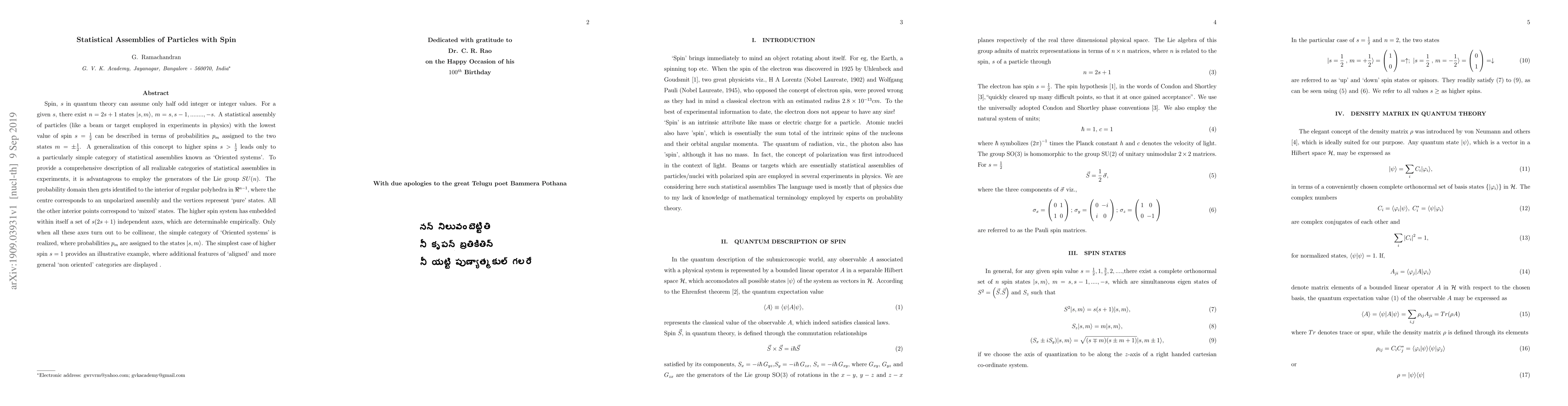Researchers found that higher spin particles can form mixed states beyond 'Oriented systems', and a statistical assembly of particles with spin can be described in terms of probabilities using Lie group $SU(n)$, providing a comprehensive description of all realizable categories of statistical assemblies.