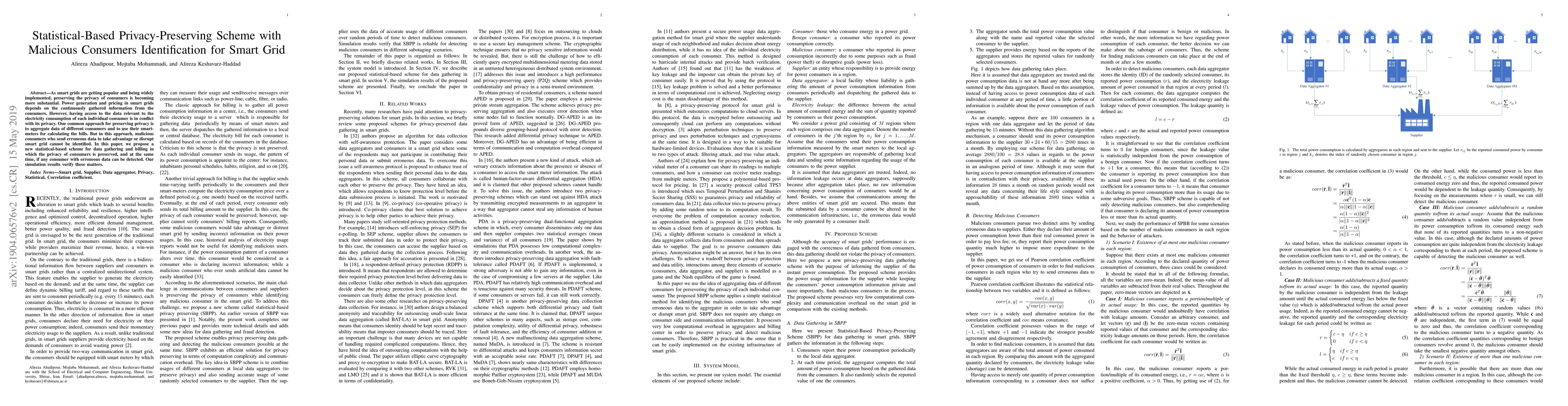 This paper proposes a statistical-based privacy-preserving scheme for smart grids that ensures consumer privacy while detecting malicious consumers who send erroneous data. Simulation results confirm the effectiveness of the proposed method.