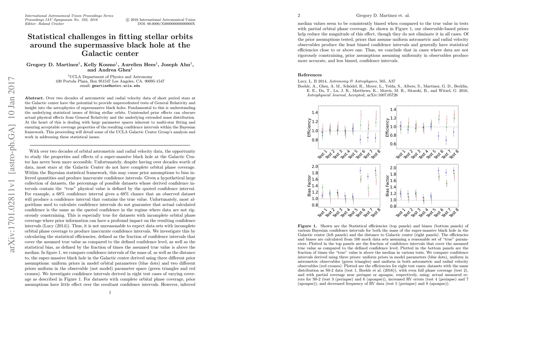 Over two decades of astrometric and radial velocity data of short period stars in the Galactic center have the potential to provide unprecedented tests of General Relativity and insight into the astrophysics of supermassive black holes. Fundamental to this is understanding the underlying statistical issues of fitting stellar orbits. Unintended prior effects can obscure actual physical effects from General Relativity and the underlying extended mass distribution. At the heart of this is dealing with large parameter spaces inherent to multi star fitting and ensuring acceptable coverage properties of the resulting confidence intervals within the Bayesian framework. This proceeding will detail some of the UCLA Galactic Center Group's analysis and work in addressing these statistical issues.