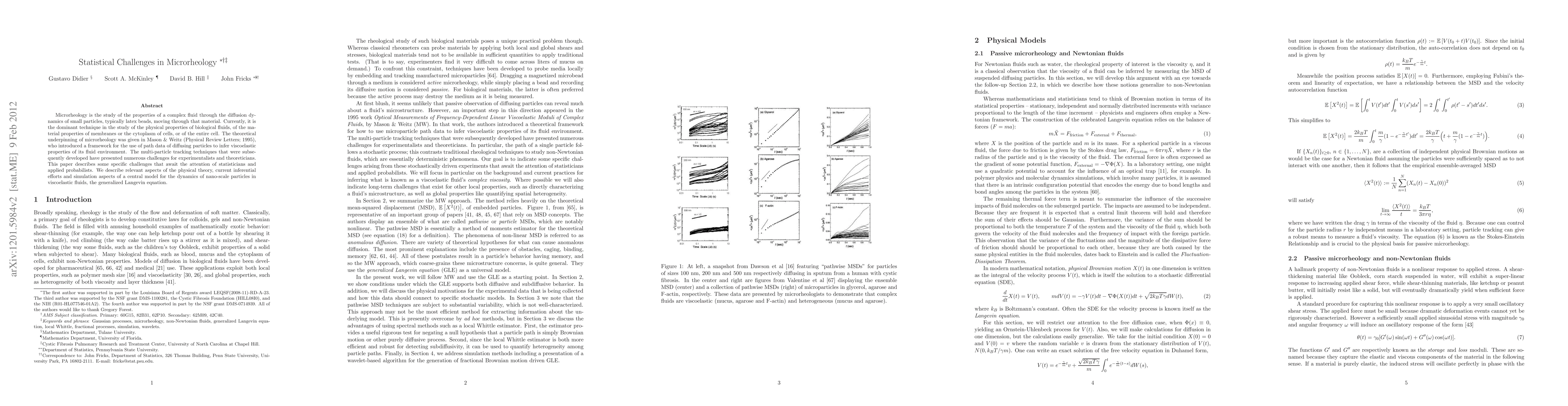 Microrheology, a technique to study complex fluids through small particles, faces statistical challenges that require attention from statisticians and applied probabilists. Researchers aim to improve inference methods for viscoelastic properties using the generalized Langevin equation.