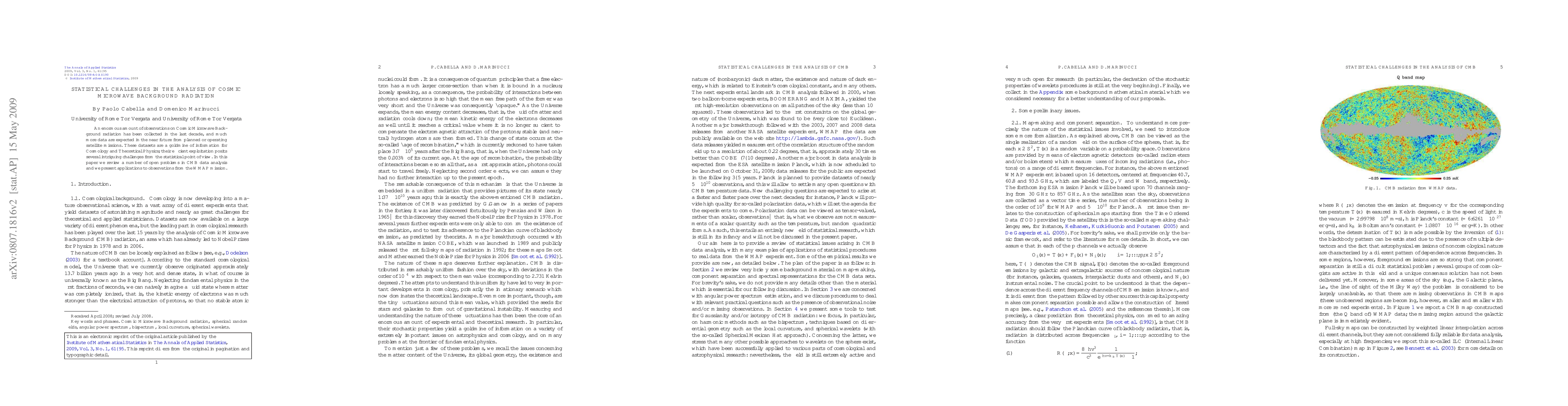 This paper reviews statistical challenges in analyzing Cosmic Microwave Background (CMB) radiation data, highlighting open problems and applying methods to WMAP mission observations. It emphasizes the need for advanced statistical techniques to fully exploit the vast datasets expected from future satellite missions.