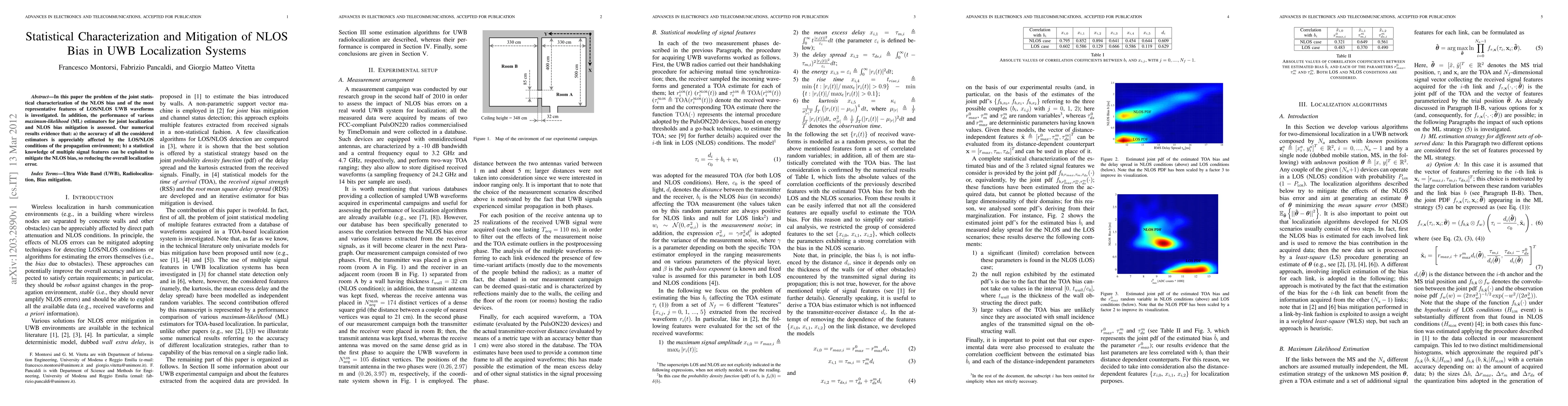 This paper investigates the statistical characterization of non-line-of-sight (NLOS) bias in ultrawideband (UWB) localization systems and assesses various maximum-likelihood estimators for mitigating NLOS bias. The results show that statistical knowledge of signal features can significantly reduce localization errors under NLOS conditions.