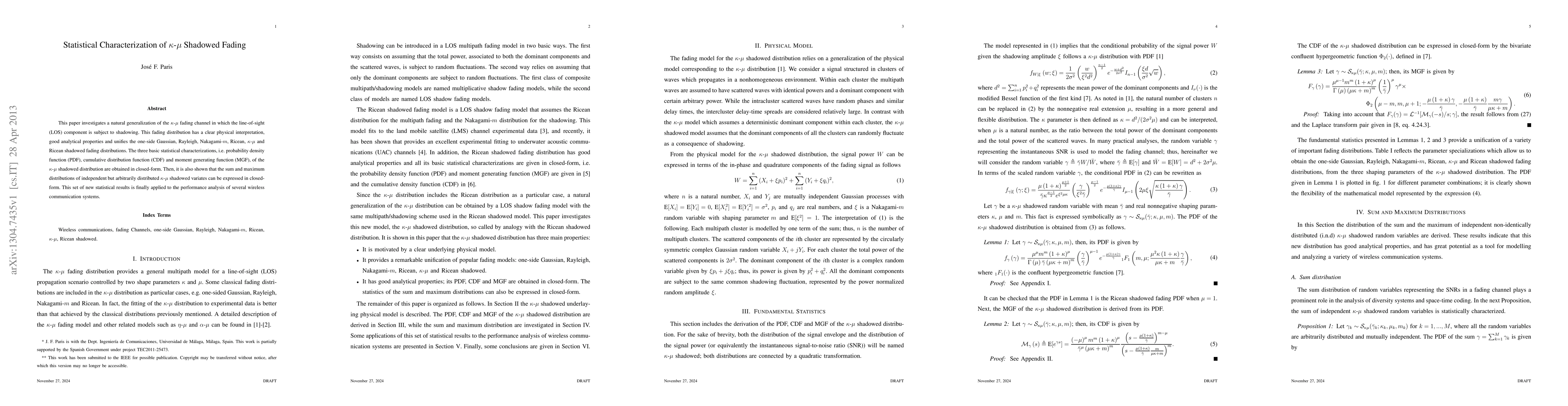 This paper derives closed-form expressions for the PDF, CDF, and MGF of the kappa-mu shadowed fading distribution, which generalizes several existing fading models. It also provides closed-form expressions for the sum and maximum distributions of independent kappa-mu shadowed variates, and applies these results to analyze the performance of various wireless communication systems.