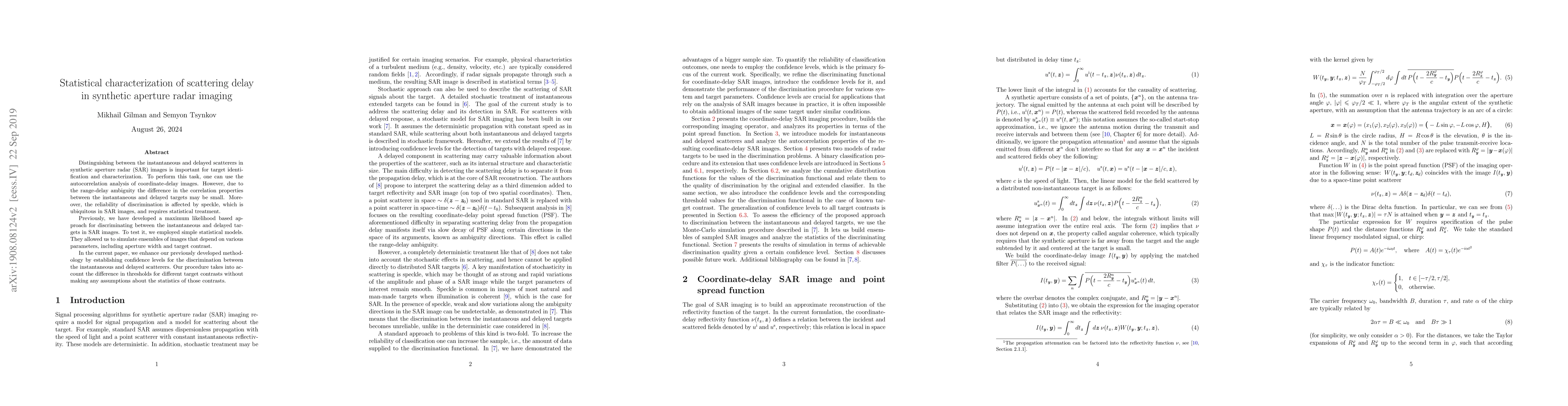 Distinguishing between the instantaneous and delayed scatterers in synthetic aperture radar (SAR) images is important for target identification and characterization. To perform this task, one can use the autocorrelation analysis of coordinate-delay images. However, due to the range-delay ambiguity the difference in the correlation properties between the instantaneous and delayed targets may be small. Moreover, the reliability of discrimination is affected by speckle, which is ubiquitous in SAR images, and requires statistical treatment. Previously, we have developed a maximum likelihood based approach for discriminating between the instantaneous and delayed targets in SAR images. To test it, we employed simple statistical models. They allowed us to simulate ensembles of images that depend on various parameters, including aperture width and target contrast. In the current paper, we enhance our previously developed methodology by establishing confidence levels for the discrimination between the instantaneous and delayed scatterers. Our procedure takes into account the difference in thresholds for different target contrasts without making any assumptions about the statistics of those contrasts.