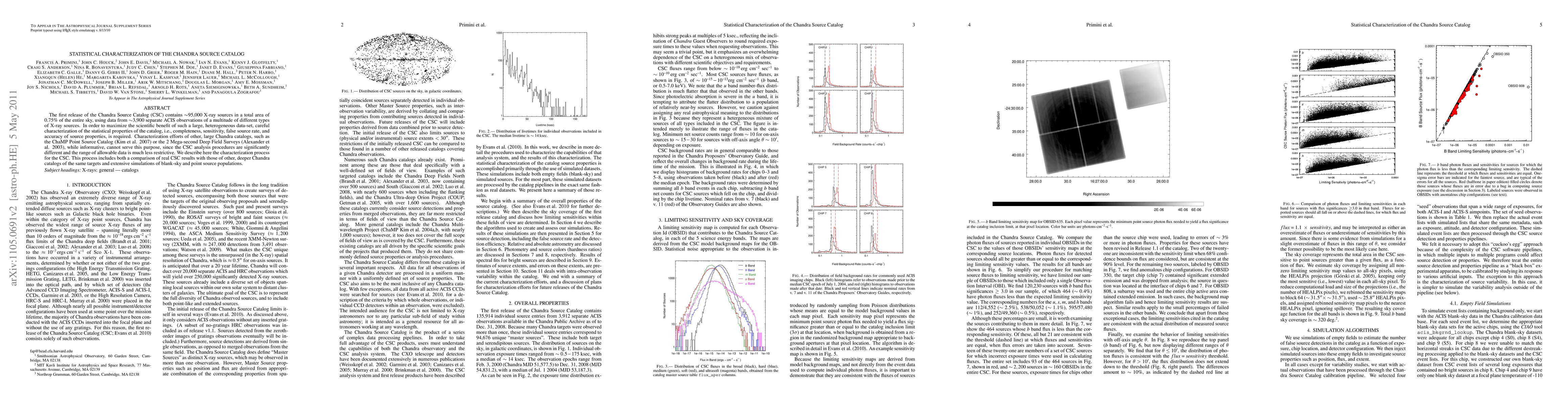 This paper characterizes the statistical properties of the first Chandra Source Catalog (CSC), detailing its completeness, sensitivity, false source rate, and accuracy. It employs comparisons with other Chandra catalogs and extensive simulations to ensure the CSC's unique analysis procedures are properly understood.