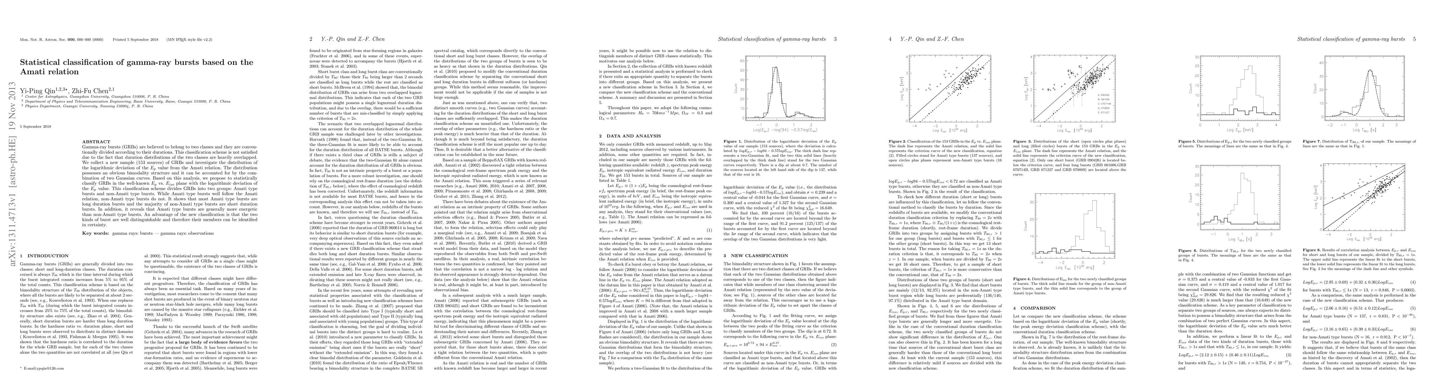 This paper proposes a new statistical classification of gamma-ray bursts (GRBs) based on the Amati relation, revealing a bimodal distribution in the logarithmic deviation of the $E_p$ value. The classification divides GRBs into Amati type and non-Amati type bursts, with the former following the Amati relation and the latter not, showing clearer distinctions between long and short duration bursts.