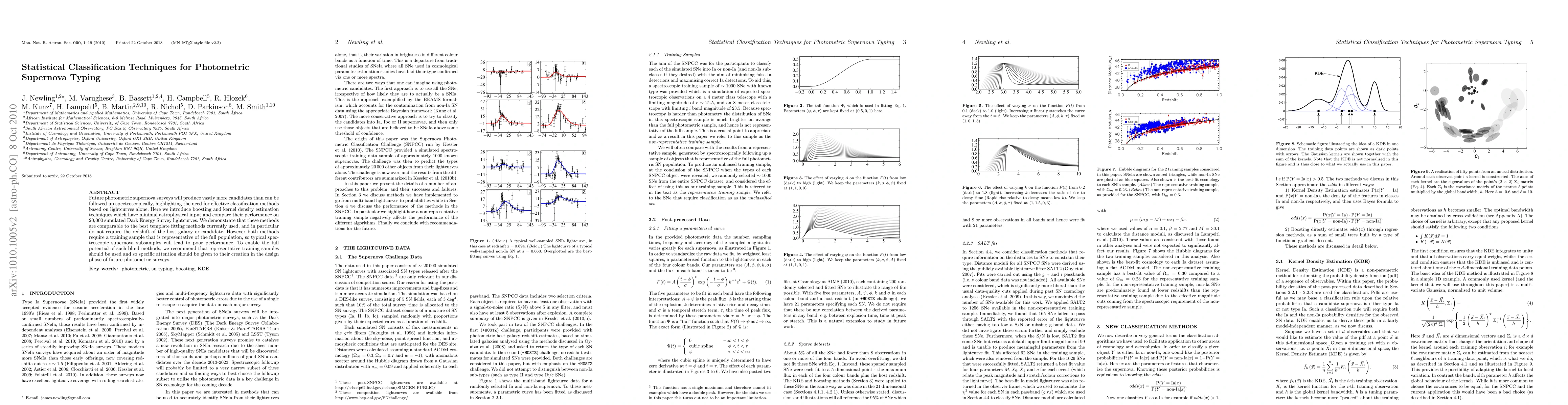 This paper introduces statistical classification techniques for supernova typing based on lightcurves, using boosting and kernel density estimation. These methods perform comparably to template fitting but require representative training samples to avoid poor performance.