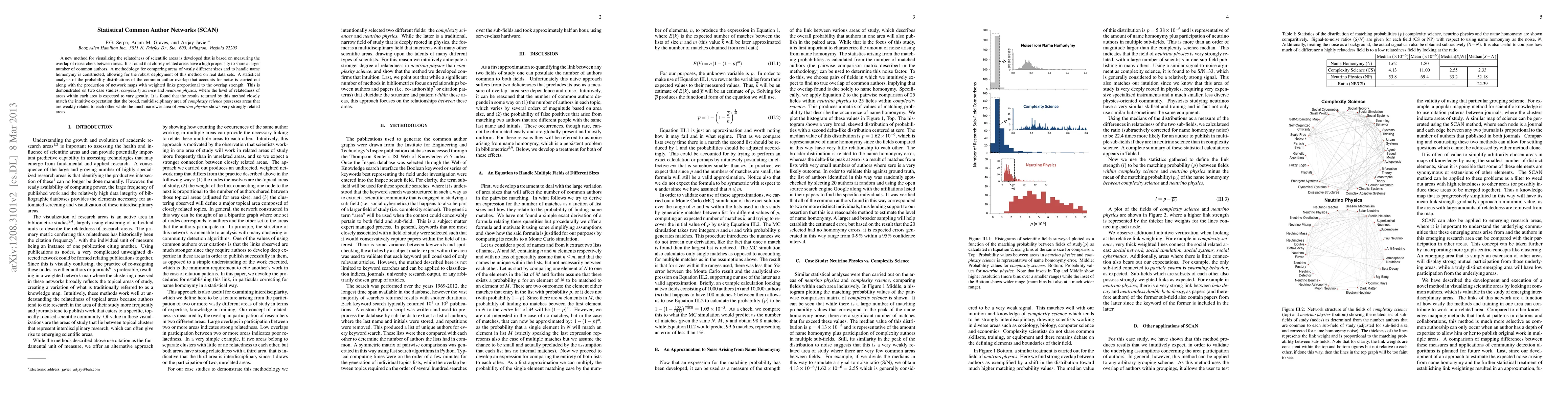 A new method for visualizing the relatedness of scientific areas is developed that is based on measuring the overlap of researchers between areas. It is found that closely related areas have a high propensity to share a larger number of common authors. A methodology for comparing areas of vastly different sizes and to handle name homonymy is constructed, allowing for the robust deployment of this method on real data sets. A statistical analysis of the probability distributions of the common author overlap that accounts for noise is carried out along with the production of network maps with weighted links proportional to the overlap strength. This is demonstrated on two case studies, complexity science and neutrino physics, where the level of relatedness of areas within each area is expected to vary greatly. It is found that the results returned by this method closely match the intuitive expectation that the broad, multidisciplinary area of complexity science possesses areas that are weakly related to each other while the much narrower area of neutrino physics shows very strongly related areas.