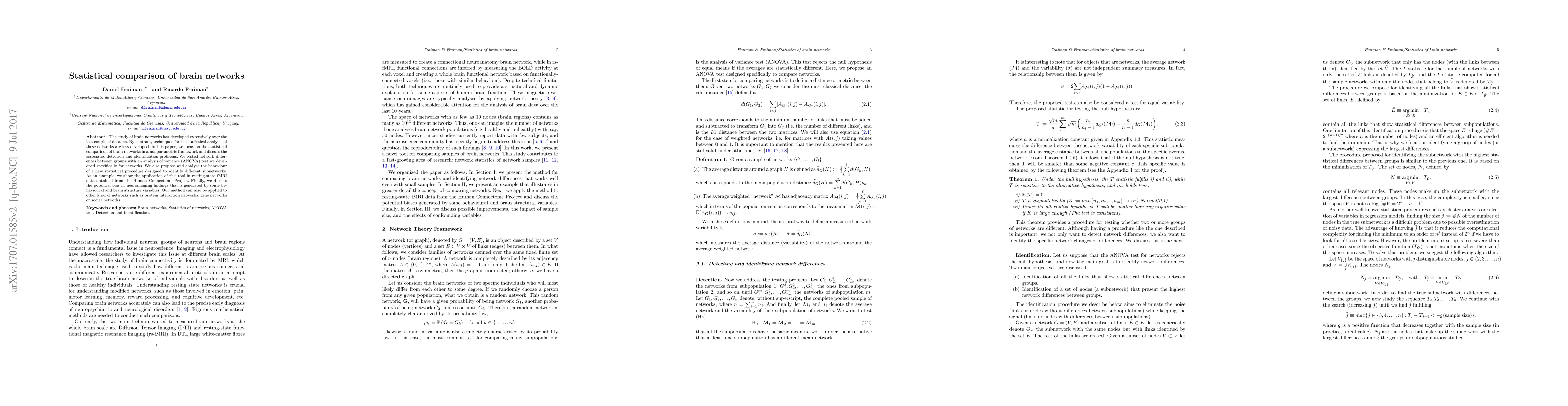 This study develops a new statistical framework for comparing brain networks and identifies potential biases in neuroimaging findings. It proposes a method to detect and identify different sub-networks and can be applied to other types of networks.