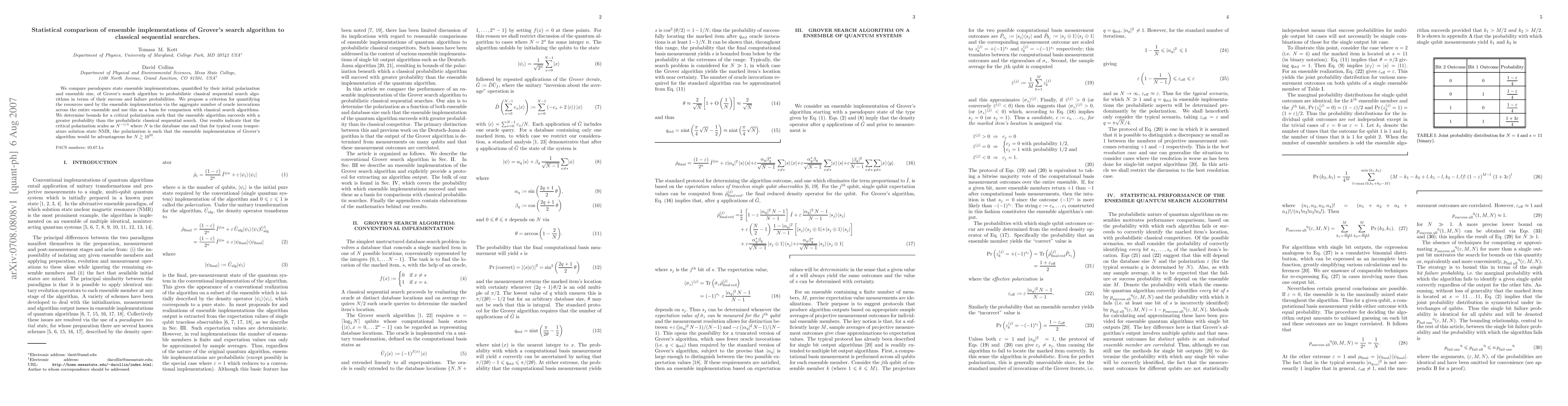 This paper compares the performance of pseudopure state ensemble implementations of Grover's search algorithm against classical sequential search algorithms, determining that the ensemble method is advantageous for sufficiently large database sizes (N > 10^22) due to a critical polarization scaling as N^(-1/4). The study proposes a criterion based on oracle invocations to quantify the resources used by the ensemble implementation.