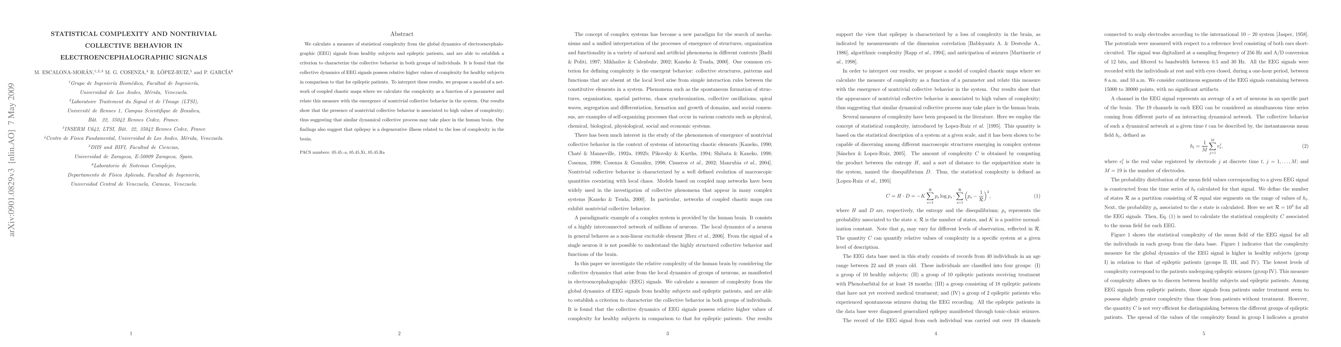 This study measures statistical complexity in EEG signals from healthy and epileptic individuals, finding higher complexity in healthy subjects. The research proposes a model linking complexity to nontrivial collective behavior, suggesting that epilepsy is associated with reduced brain complexity.