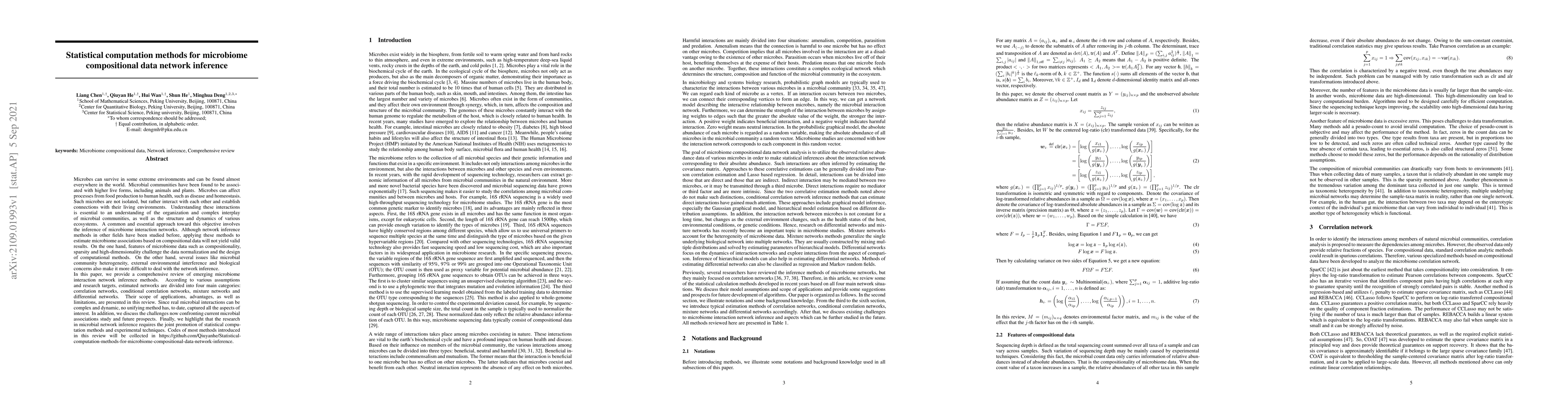 This paper reviews statistical methods for inferring microbiome interaction networks from compositional data, highlighting the unique challenges posed by data features like sparsity and high-dimensionality. It categorizes methods into correlation, conditional correlation, mixture, and differential networks, discussing their applications, advantages, and limitations, and emphasizes the need for integrating statistical methods with experimental techniques to advance the field.