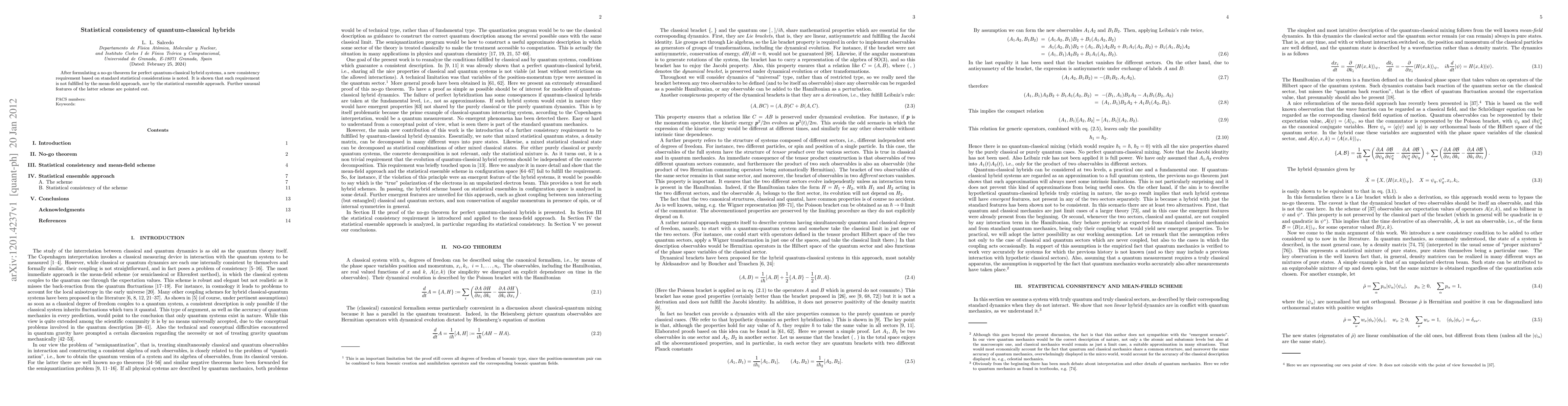 After formulating a no-go theorem for perfect quantum-classical hybrid systems, a new consistency requirement based on standard statistical considerations is noted. It is shown that such requirement is not fulfilled by the mean-field approach, nor by the statistical ensemble approach. Further unusual features of the latter scheme are pointed out.